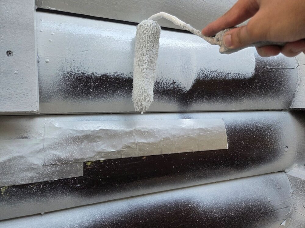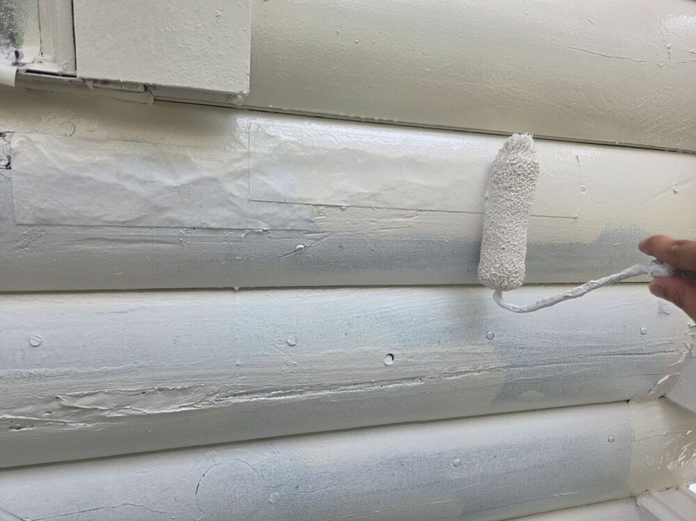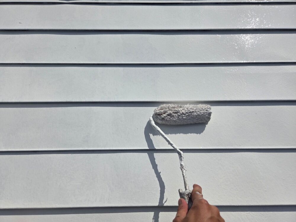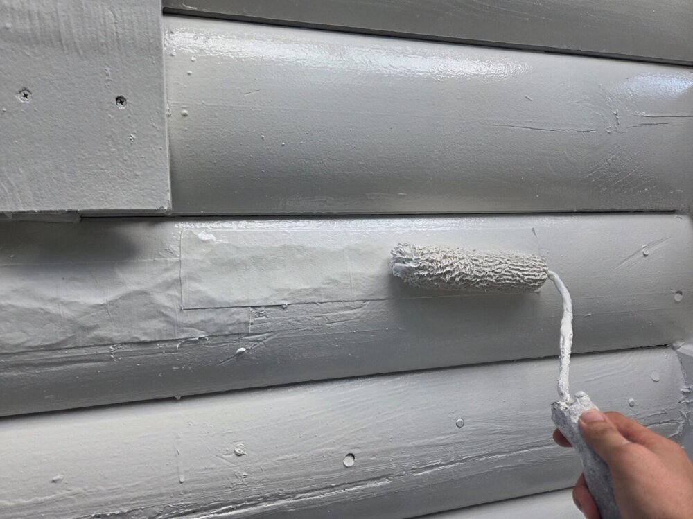 外壁材と塗料との密着性を高める為下塗り材を塗布していきます。 -
