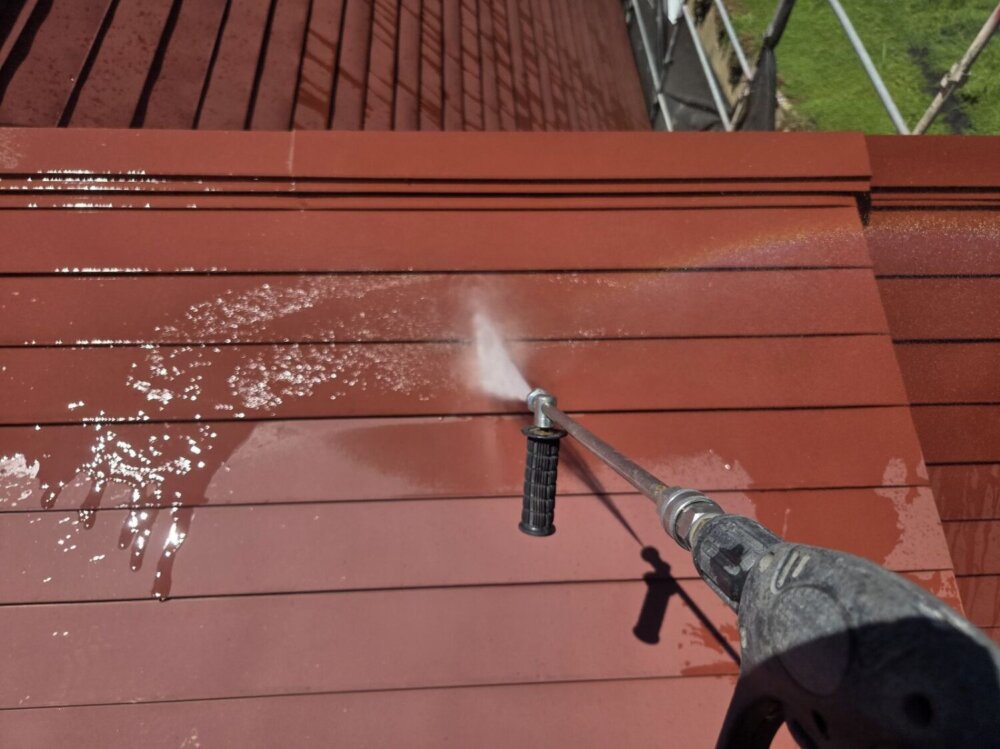 屋根に付着している砂塵、汚れ、苔、藻、カビなどを洗い流し綺麗にする作業になります。 -