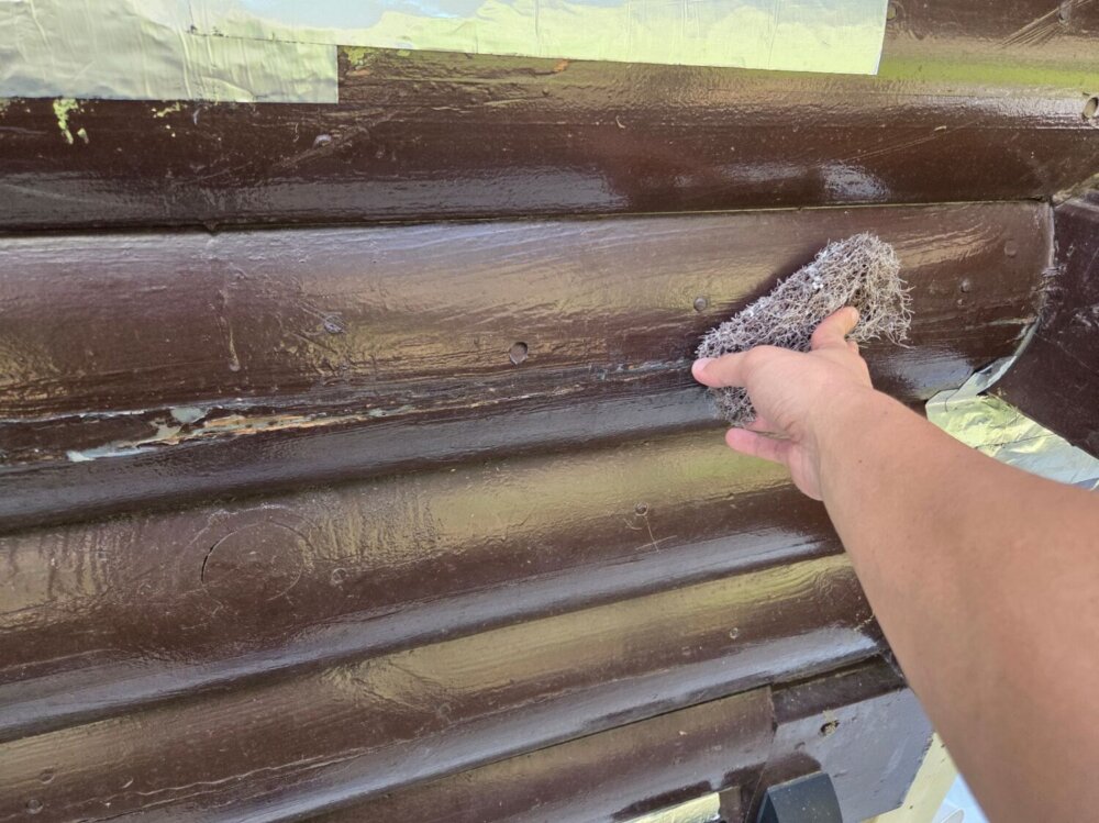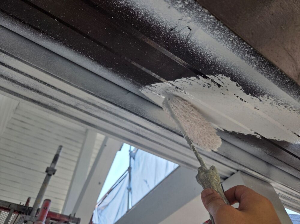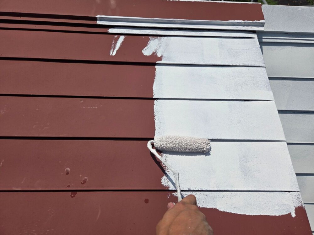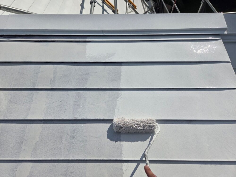 屋根材と塗料との密着性を高める為下塗り材を塗布していきます。 -