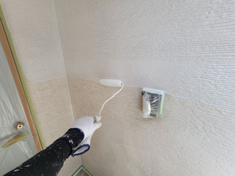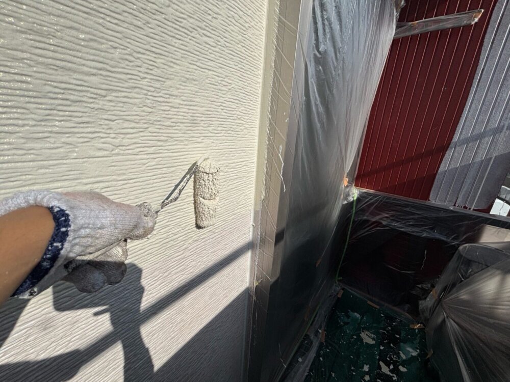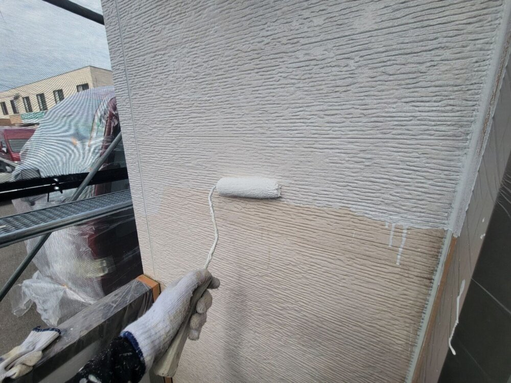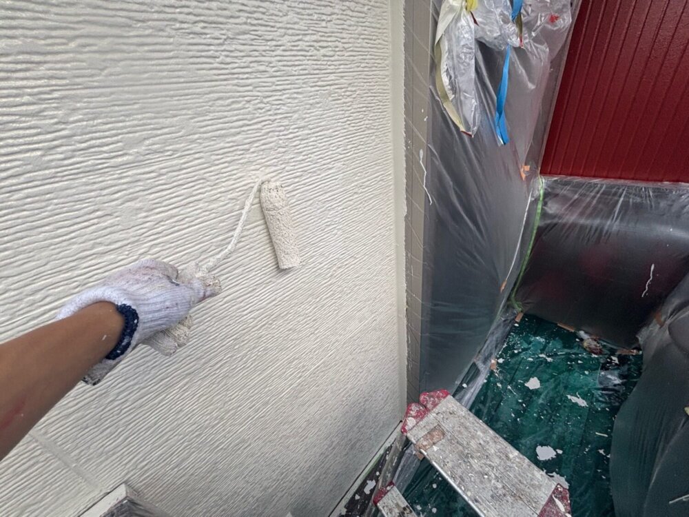 外壁材と塗料との密着性を高める為下塗り材を塗布していきます。 -