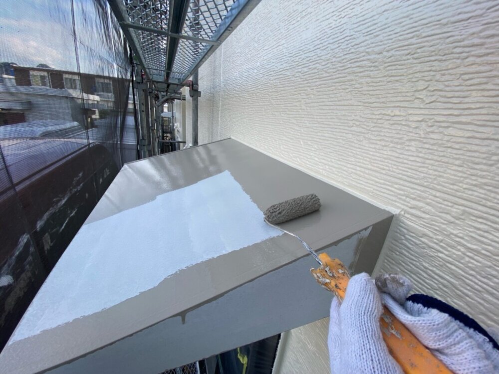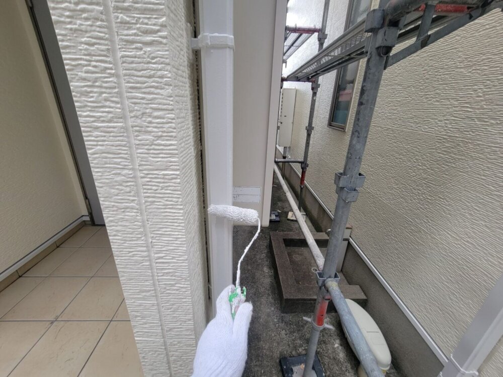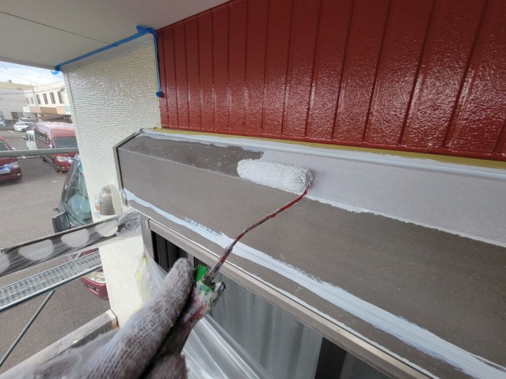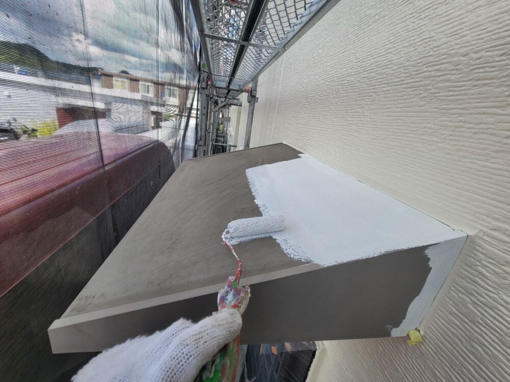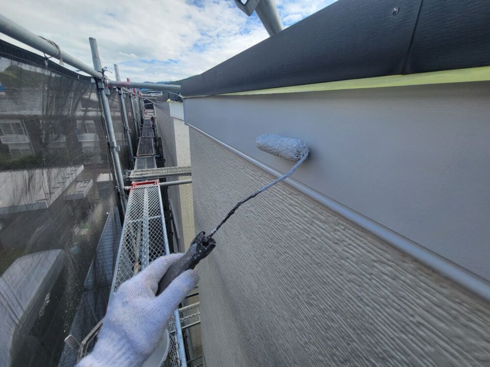 外壁材と塗料との密着性を高める為下塗り材を塗布していきます。 -
