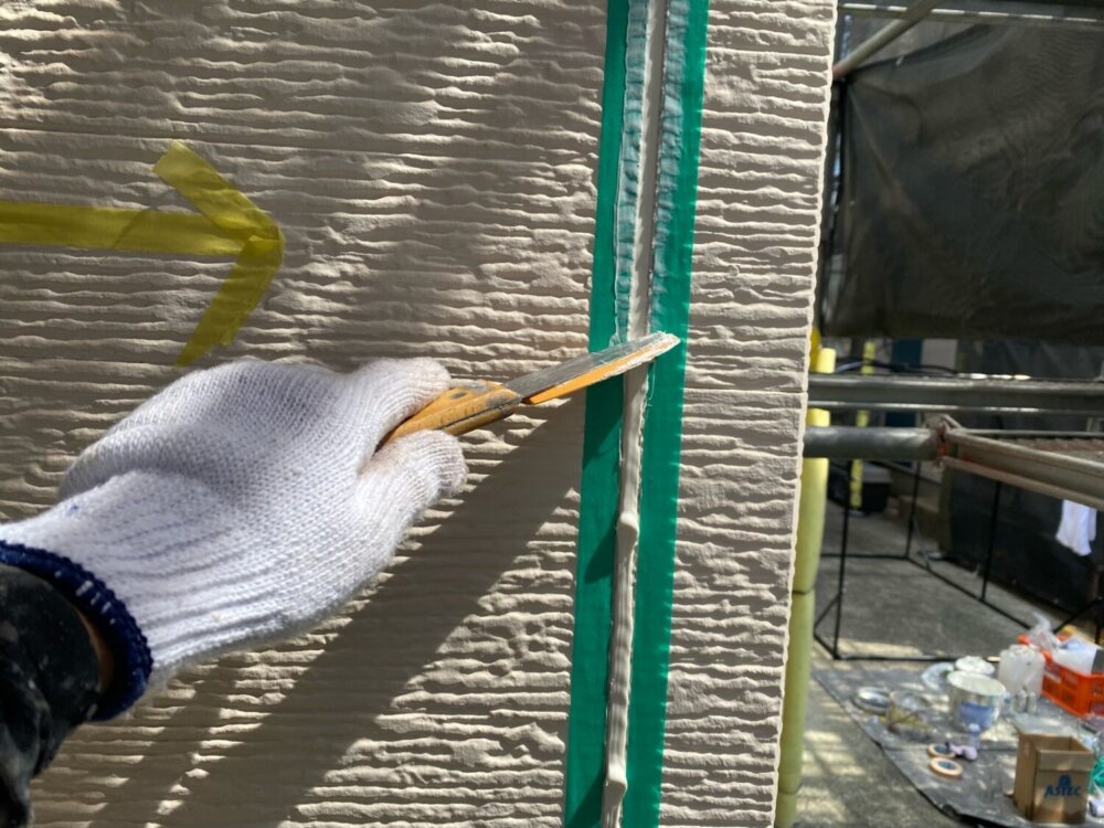 この作業を怠ると、工事完了後すぐに剥がれが起きてくることや、コーキングの役割を果たすことが出来ないため重要な工程です。 -