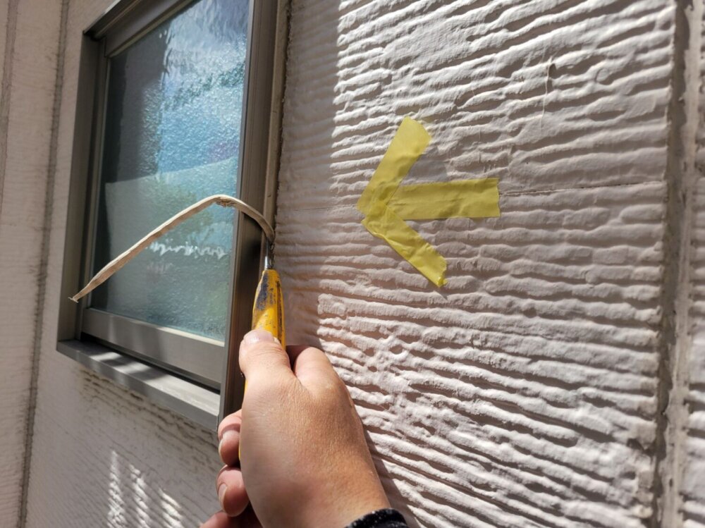 コーキング工事は、古いコーキングを取り除く【撤去】からのスタートとなります。