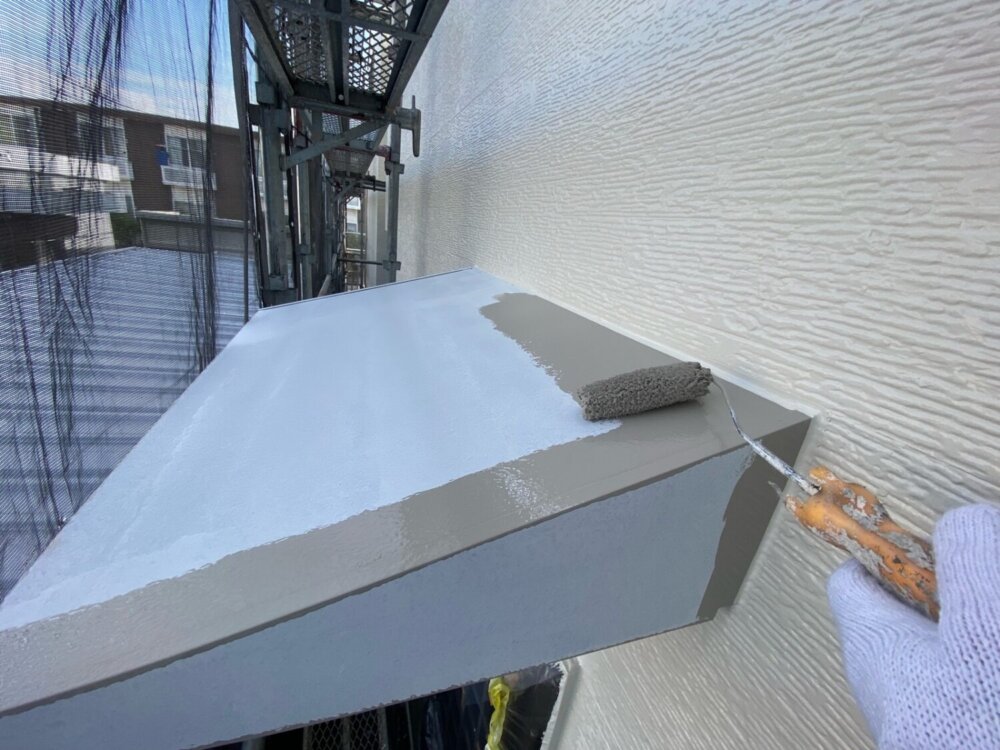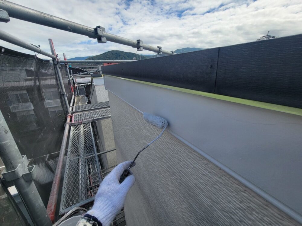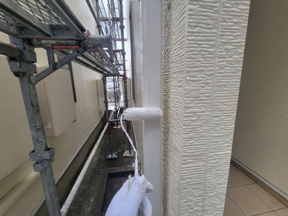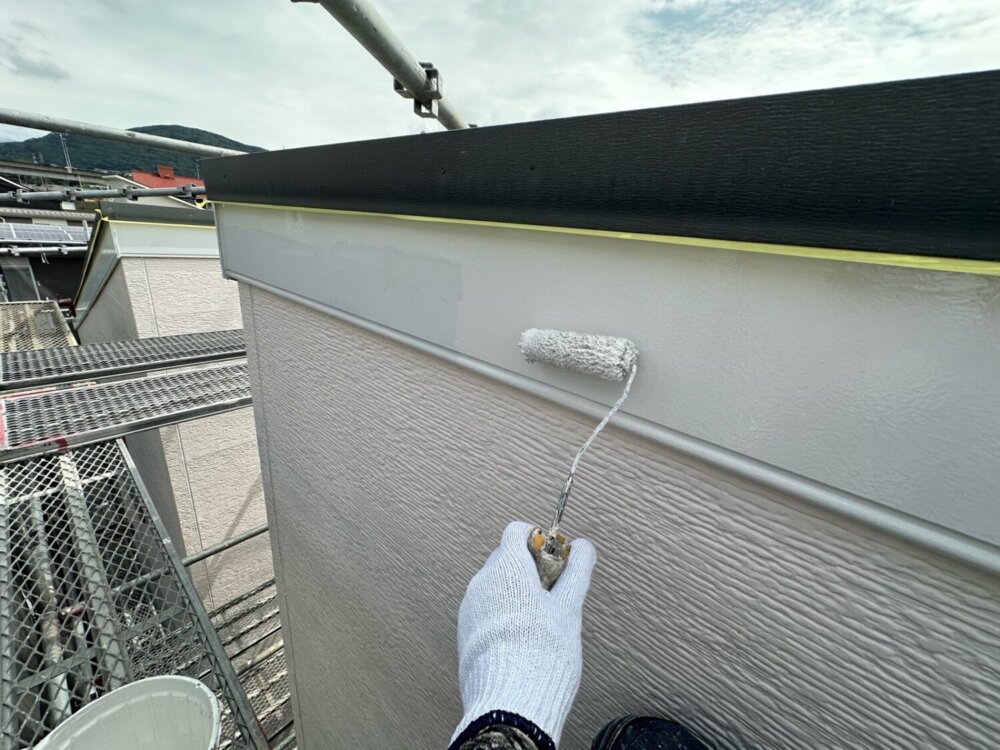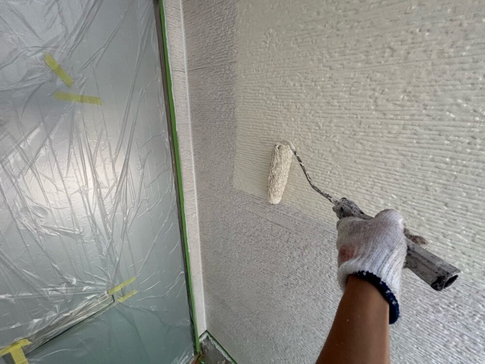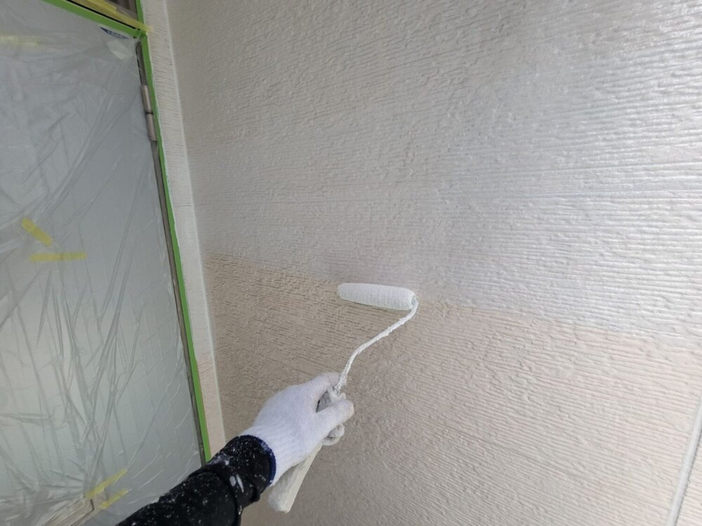 外壁材と塗料との密着性を高める為下塗り材を塗布していきます。 -