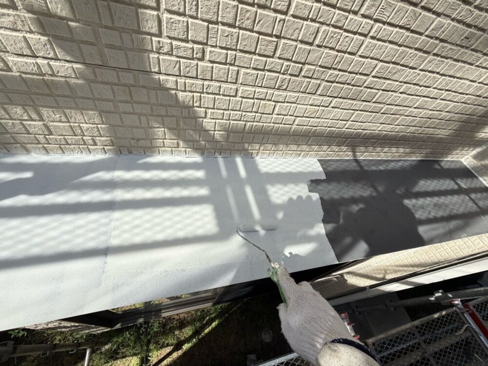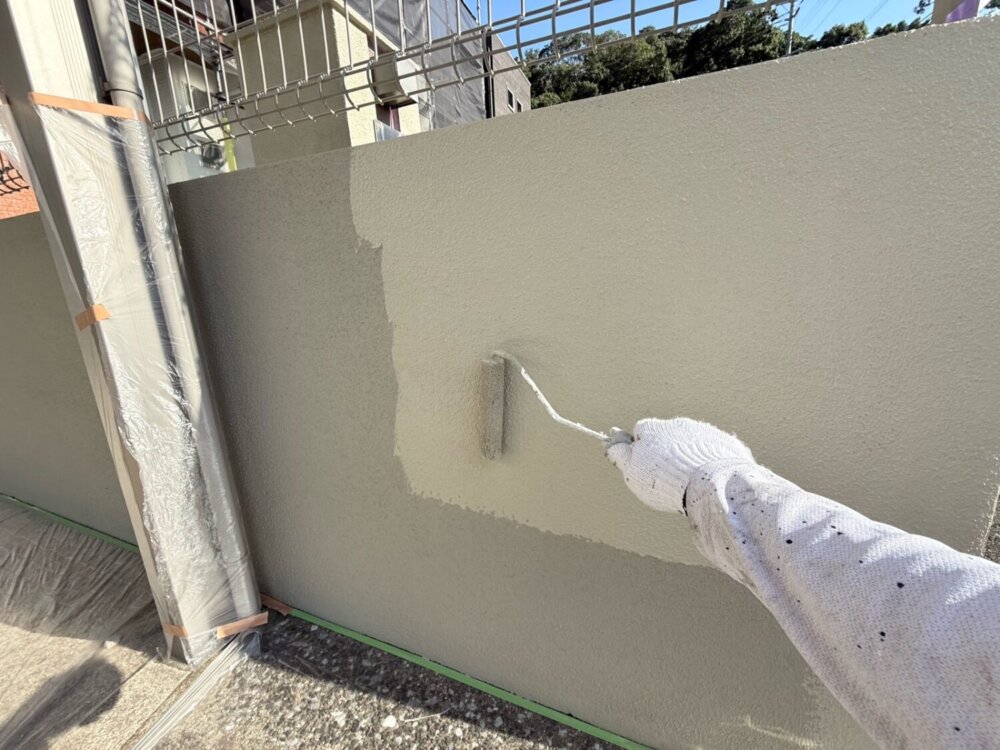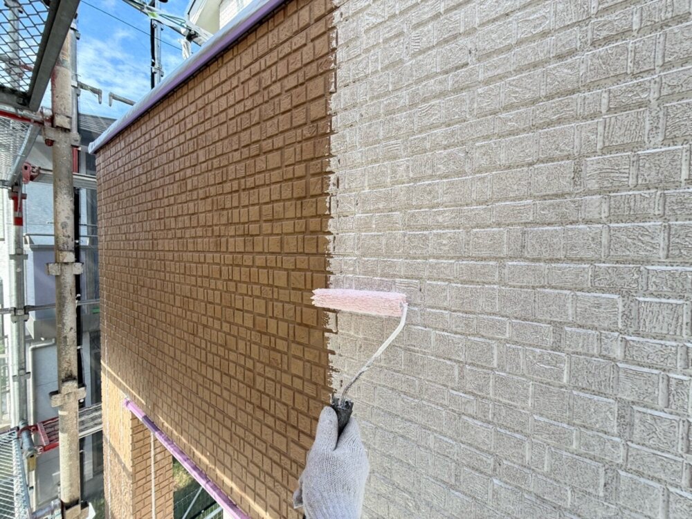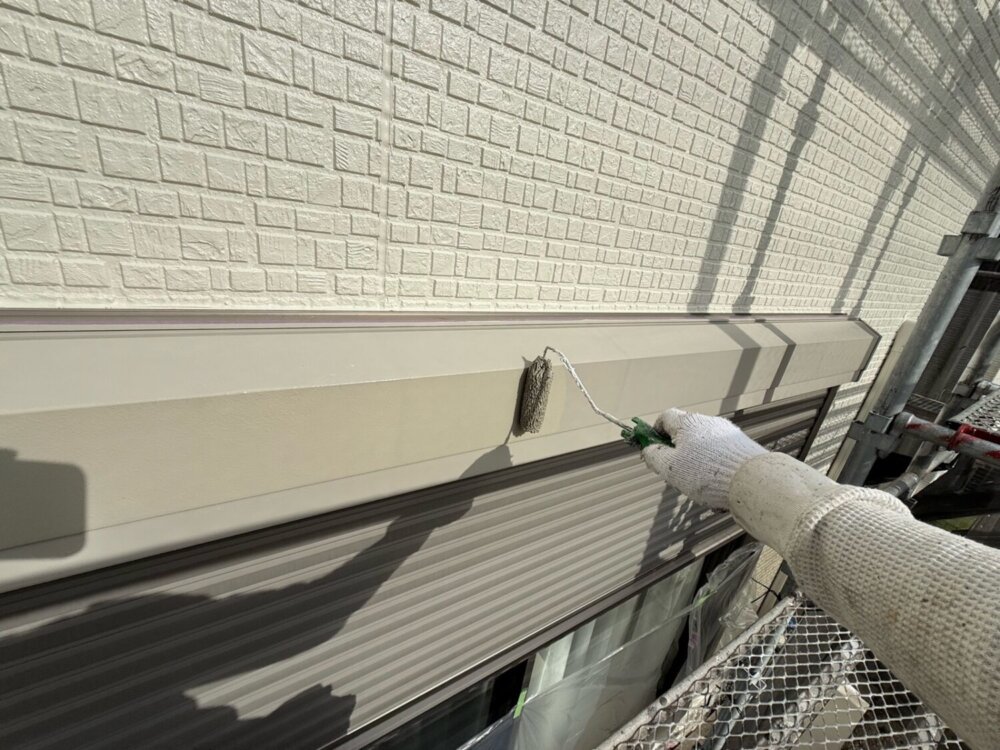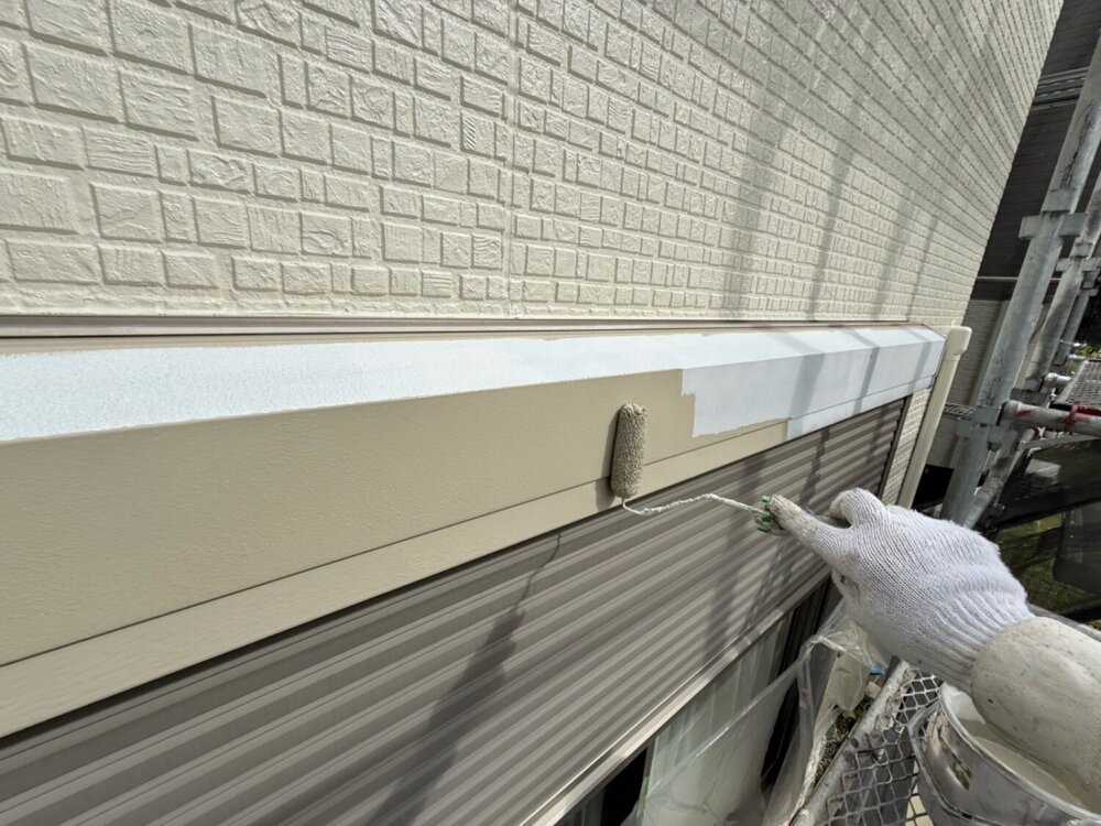 外壁材と塗料との密着性を高める為下塗り材を塗布していきます。