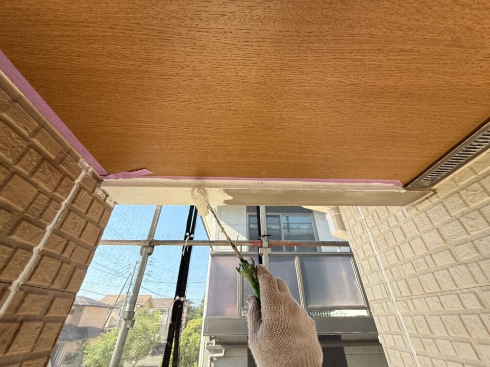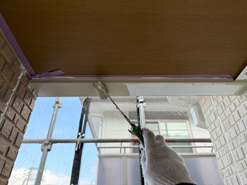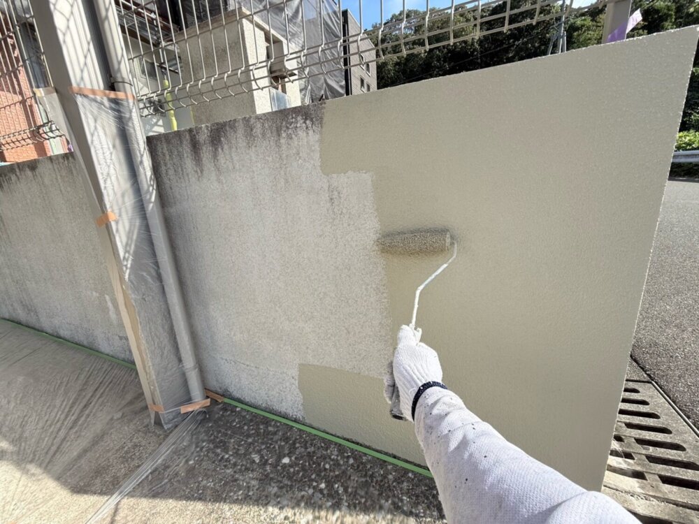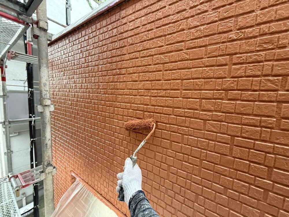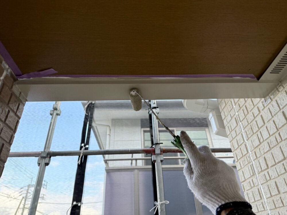 外壁材と塗料との密着性を高める為下塗り材を塗布していきます。