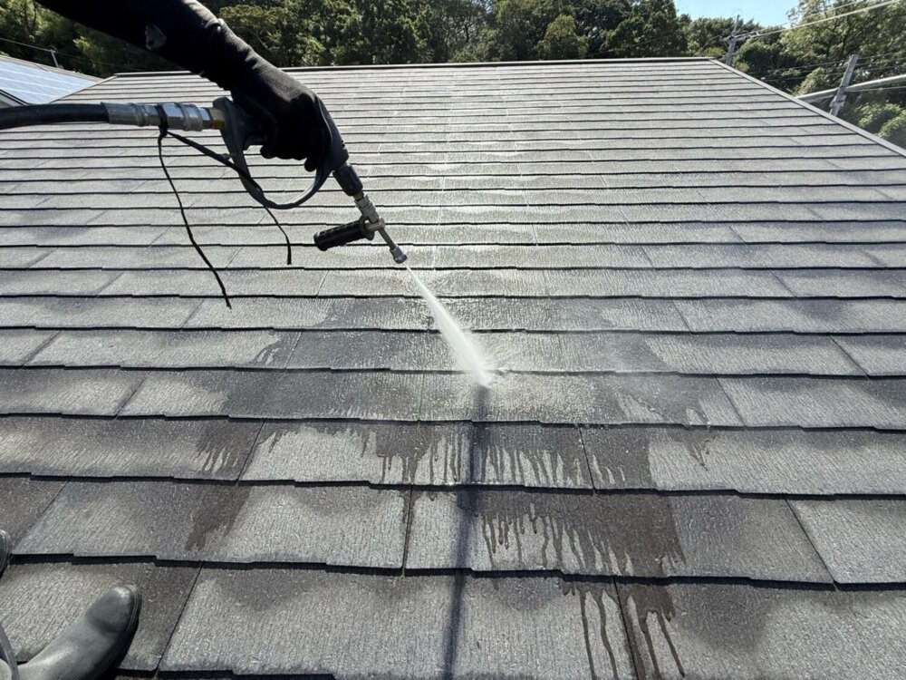 屋根に付着している砂塵、汚れ、苔、藻、カビなどを洗い流し綺麗にする作業になります。