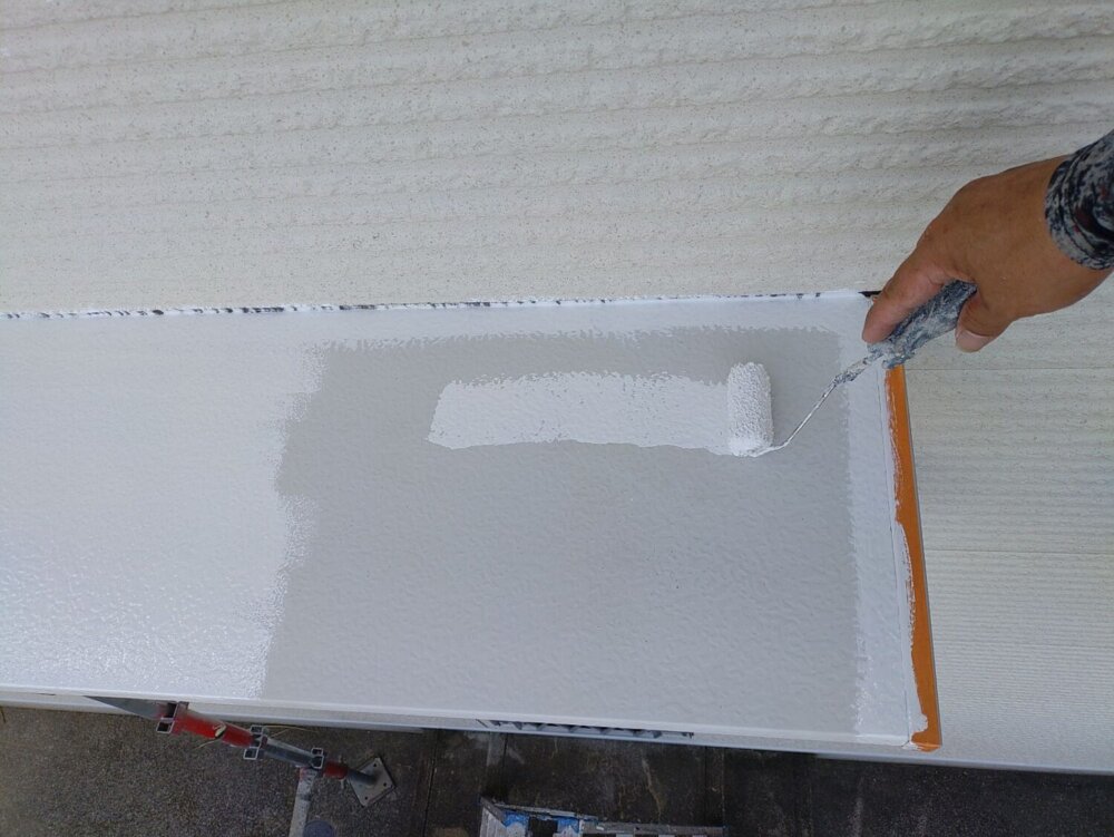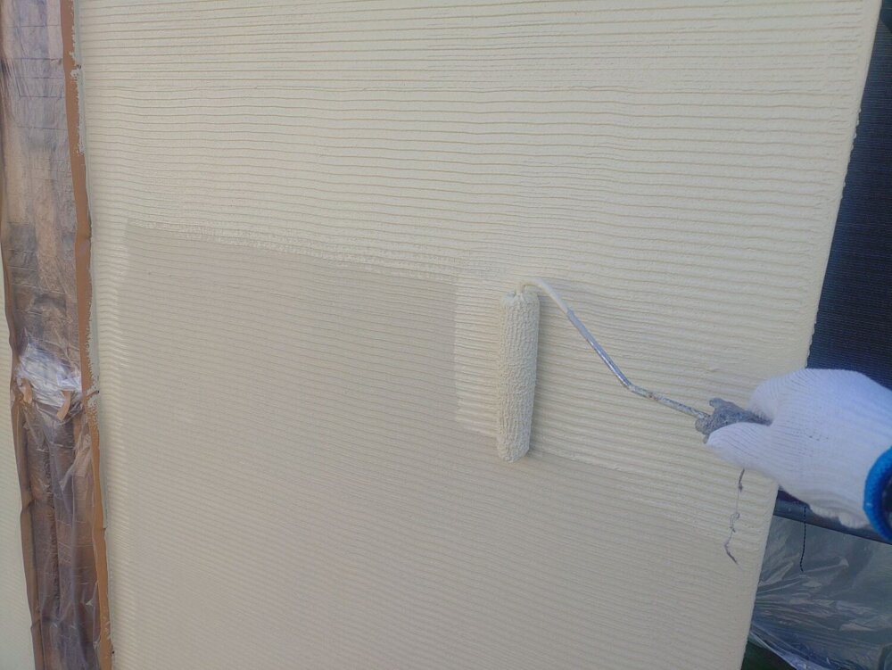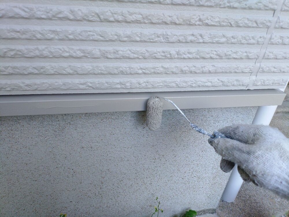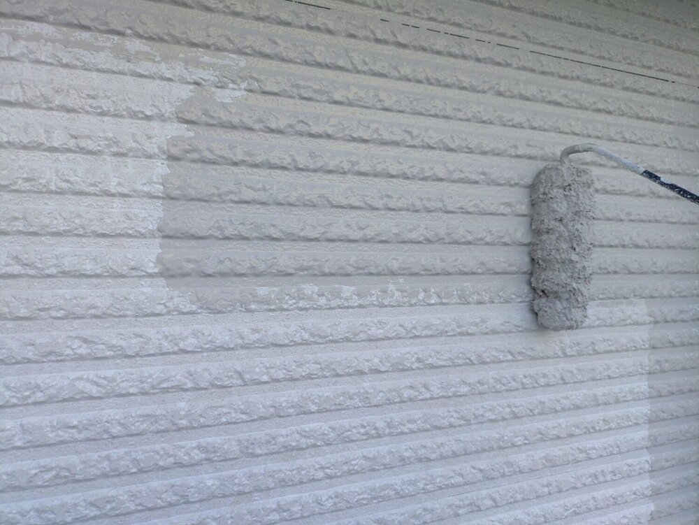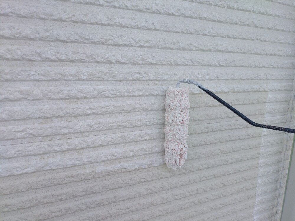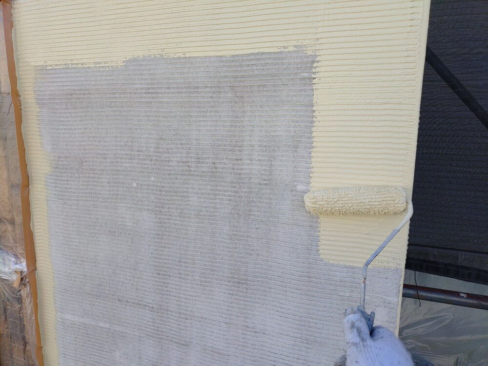 外壁材と塗料との密着性を高める為下塗り材を塗布していきます。