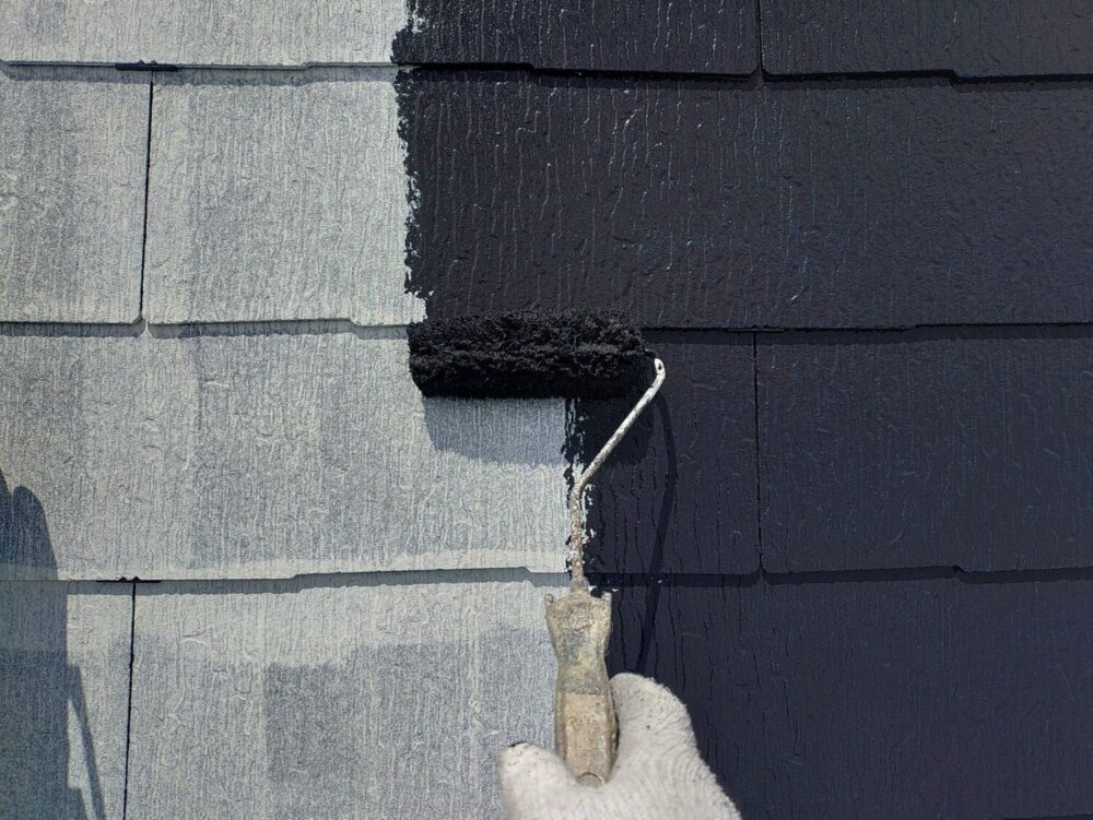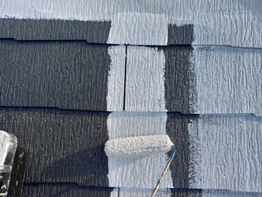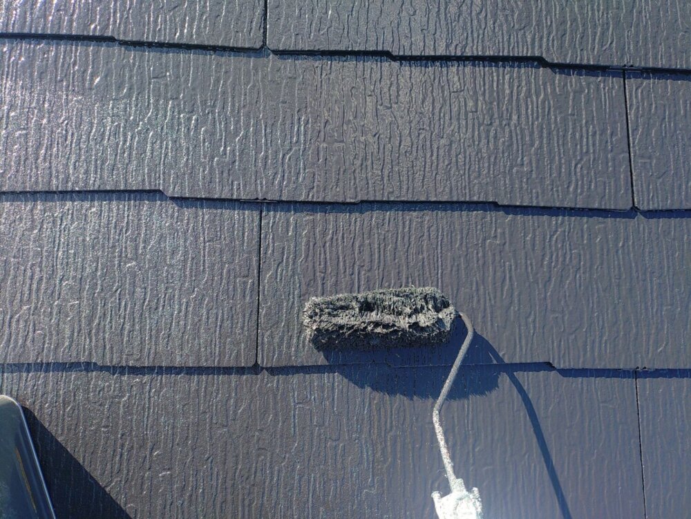 屋根材と塗料との密着性を高める為下塗り材を塗布していきます。