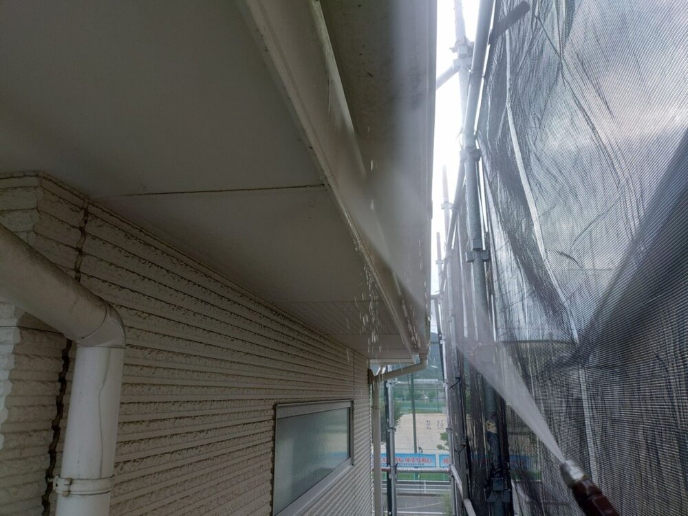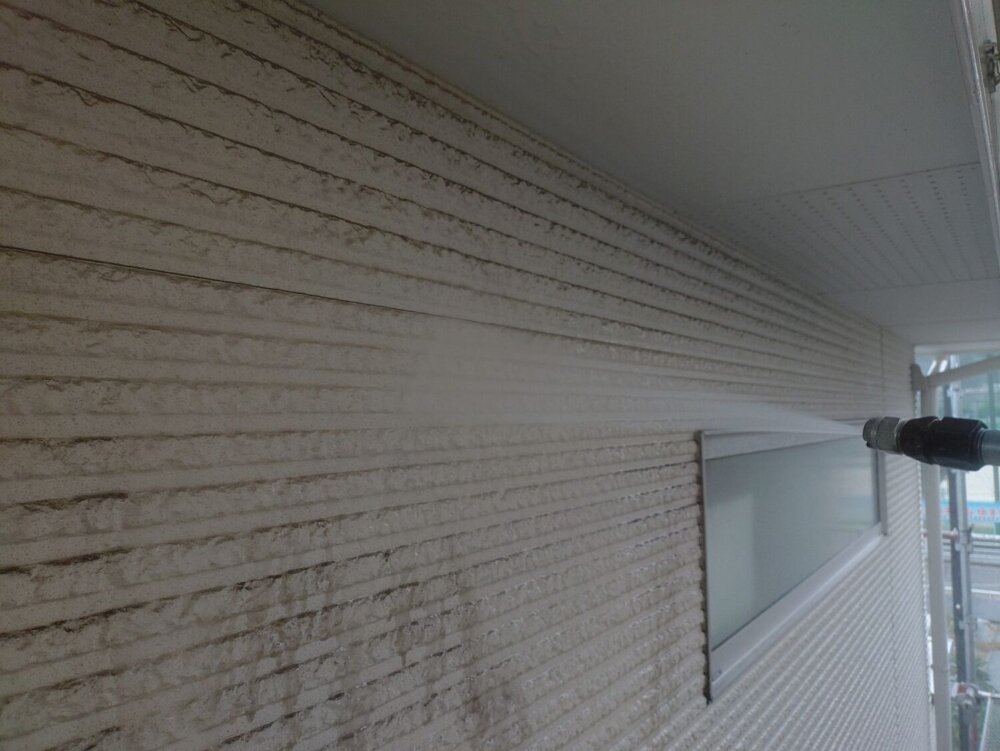 外壁に付着している砂塵、汚れ、苔、藻、カビなどを洗い流し綺麗にする作業になります。