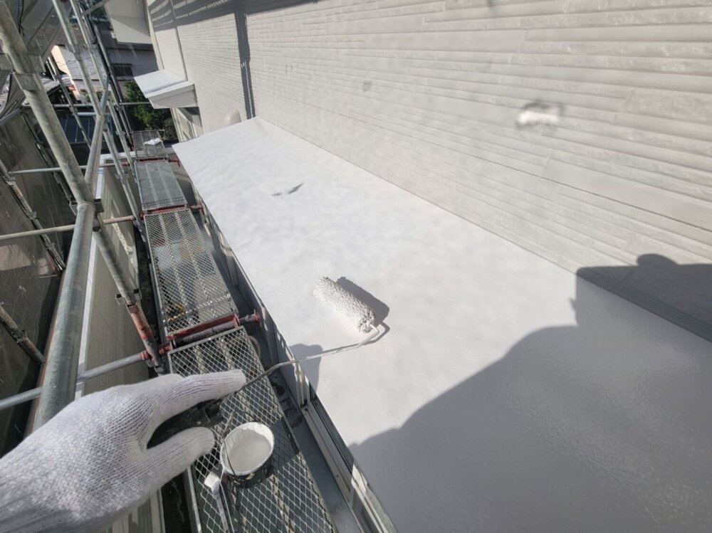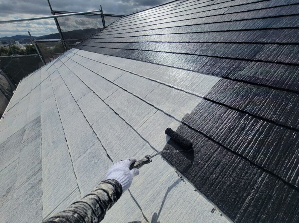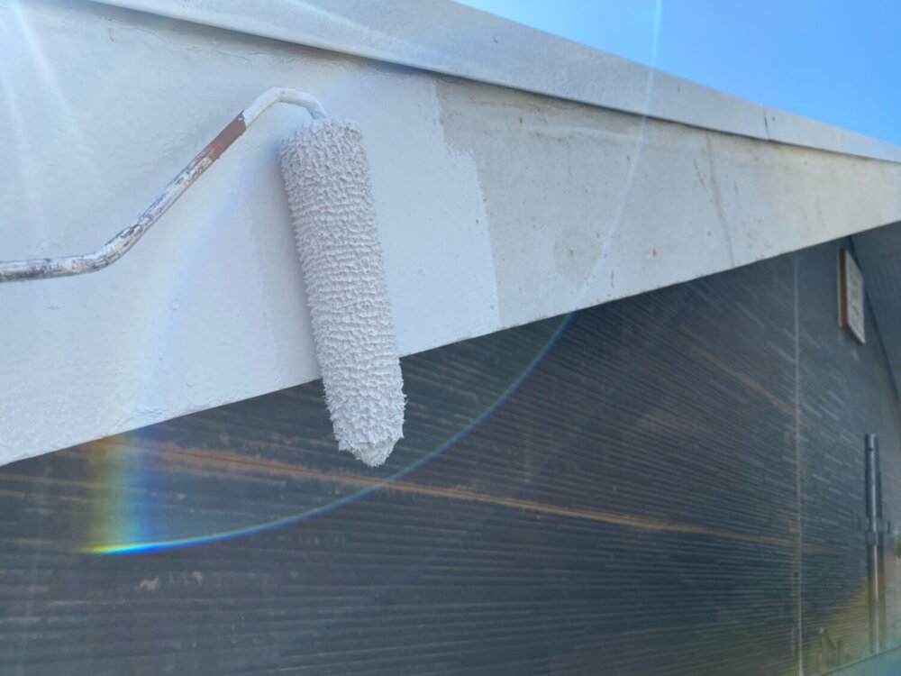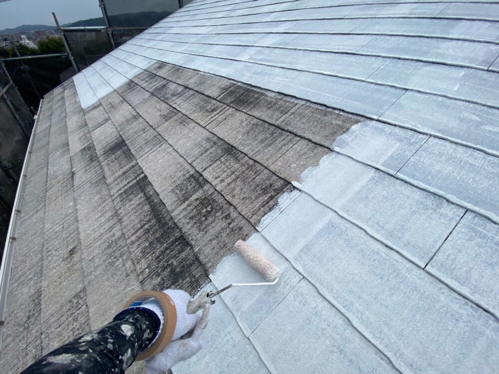 屋根材と塗料との密着性を高める為下塗り材を塗布していきます。 -