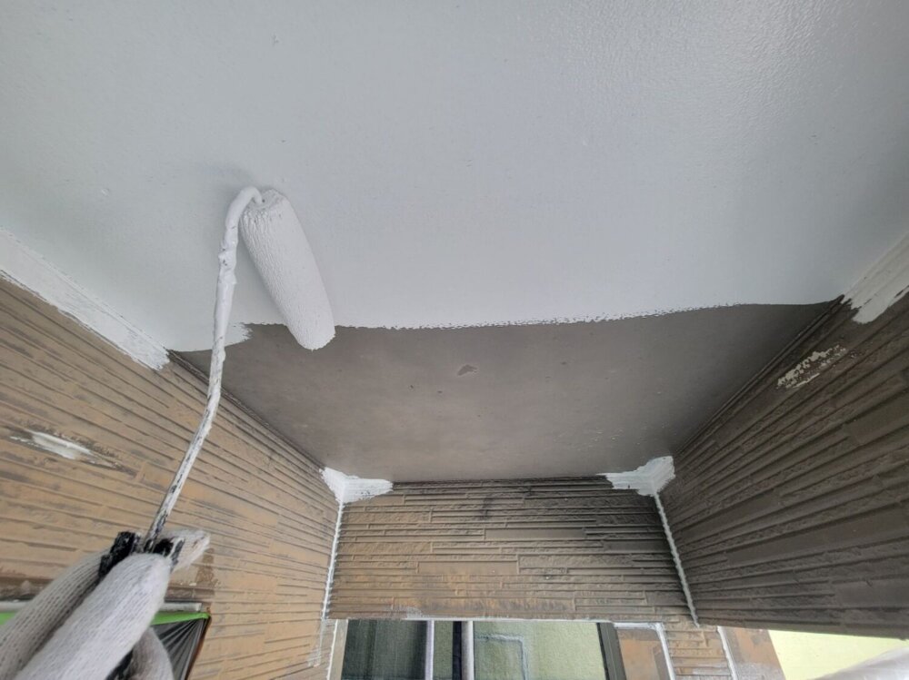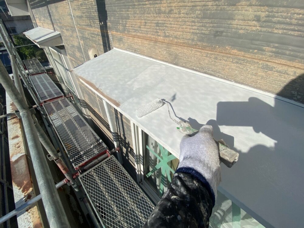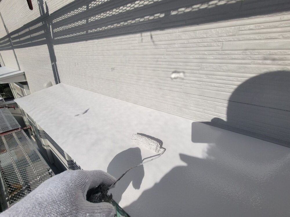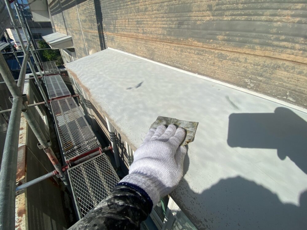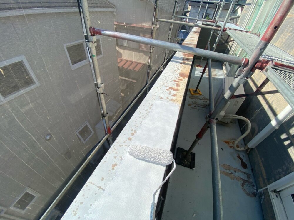 屋根材と塗料との密着性を高める為下塗り材を塗布していきます。 -