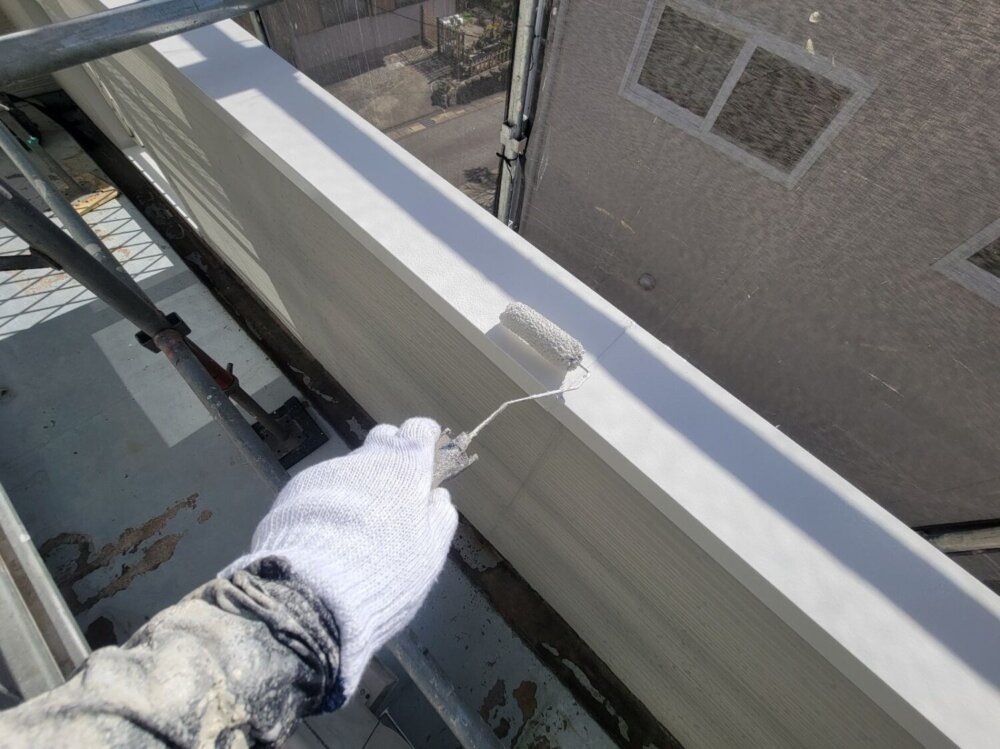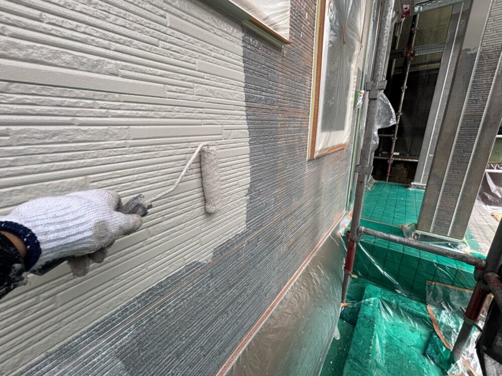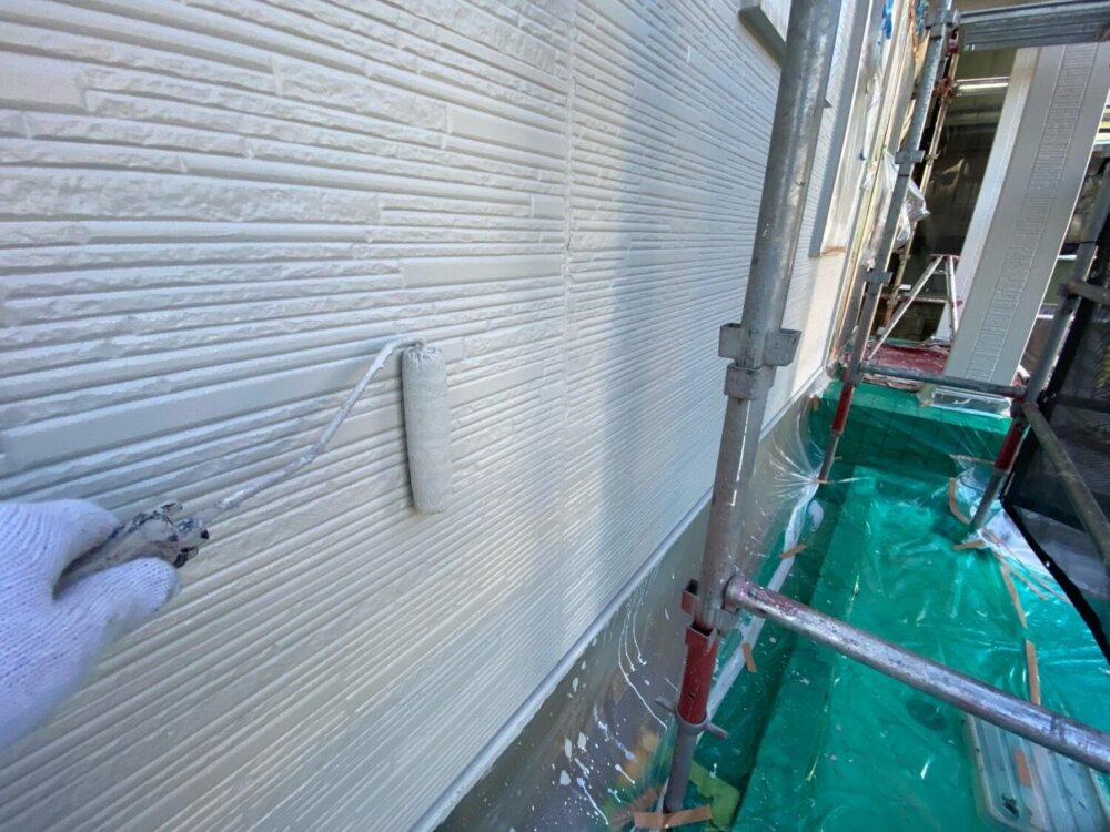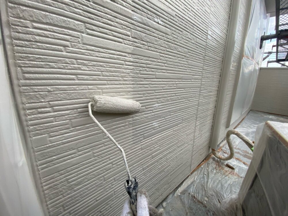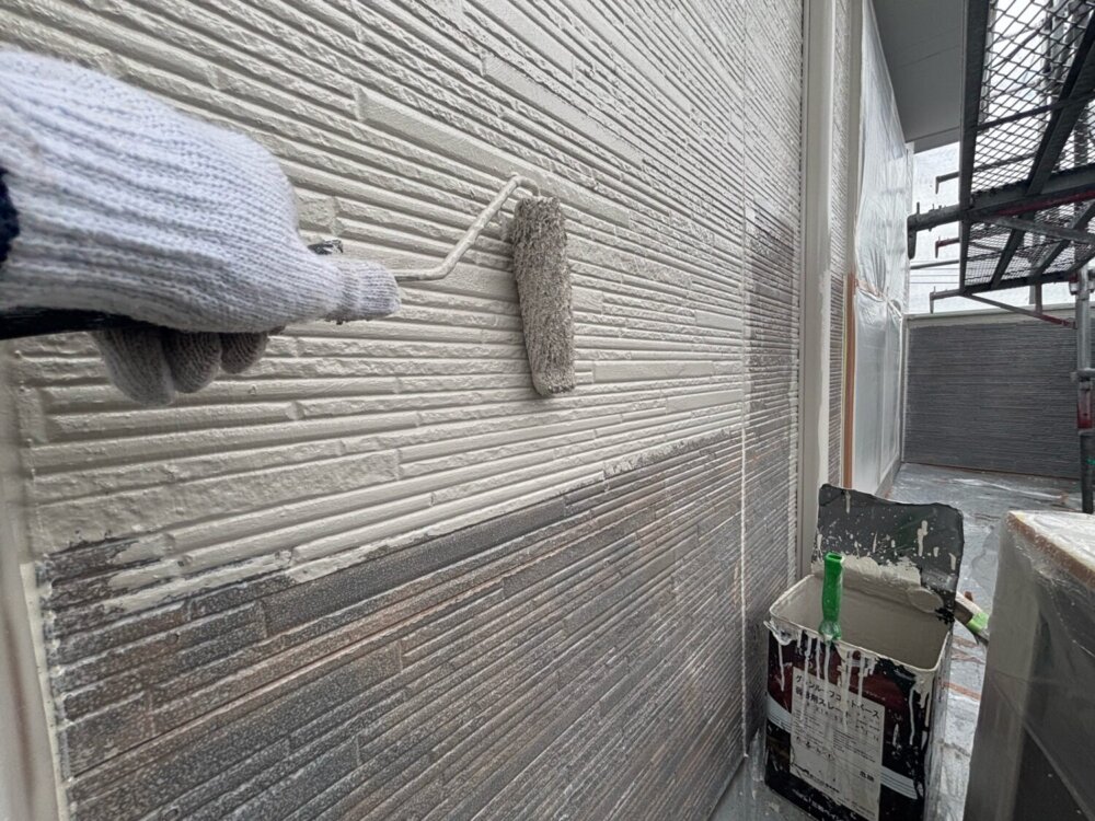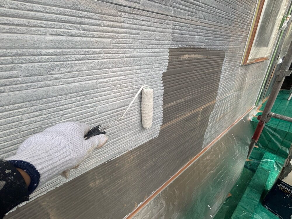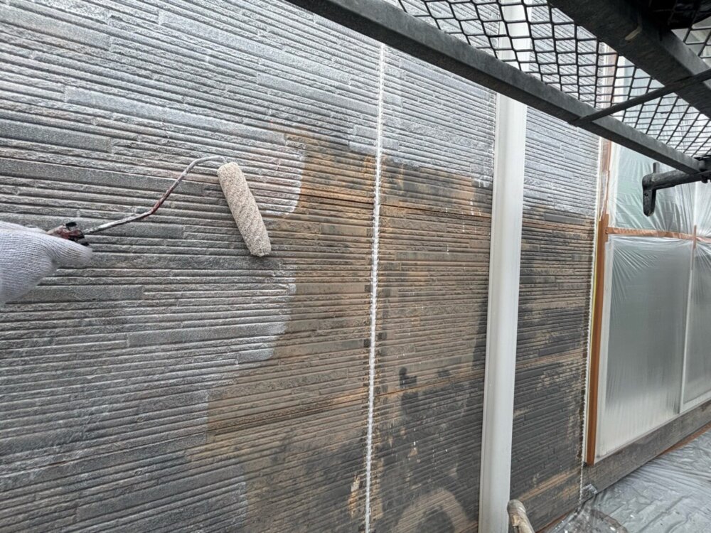 外壁材と塗料との密着性を高める為下塗り材を塗布していきます。 -