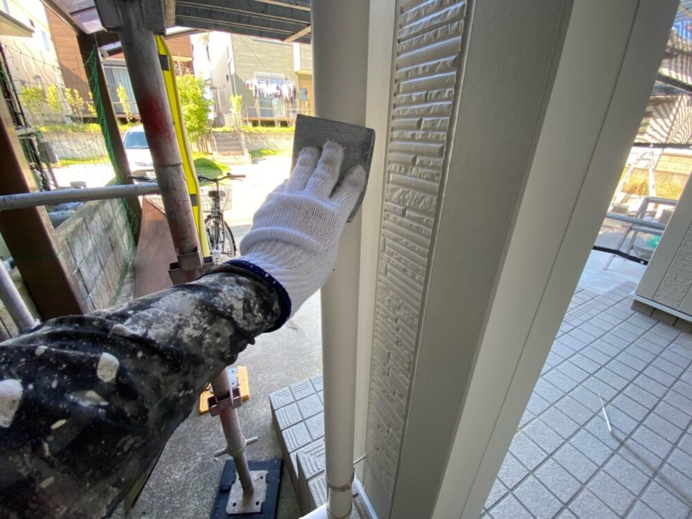 この作業を怠ると、工事完了後すぐに剥がれが起きてくることや、コーキングの役割を果たすことが出来ないため重要な工程です。 -