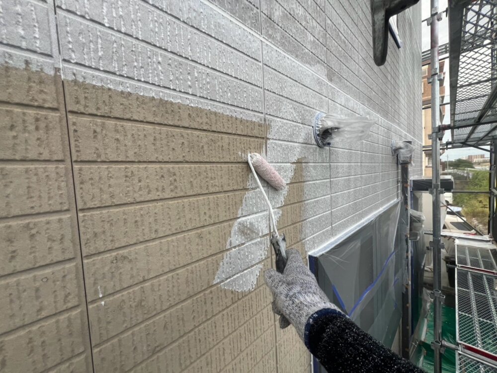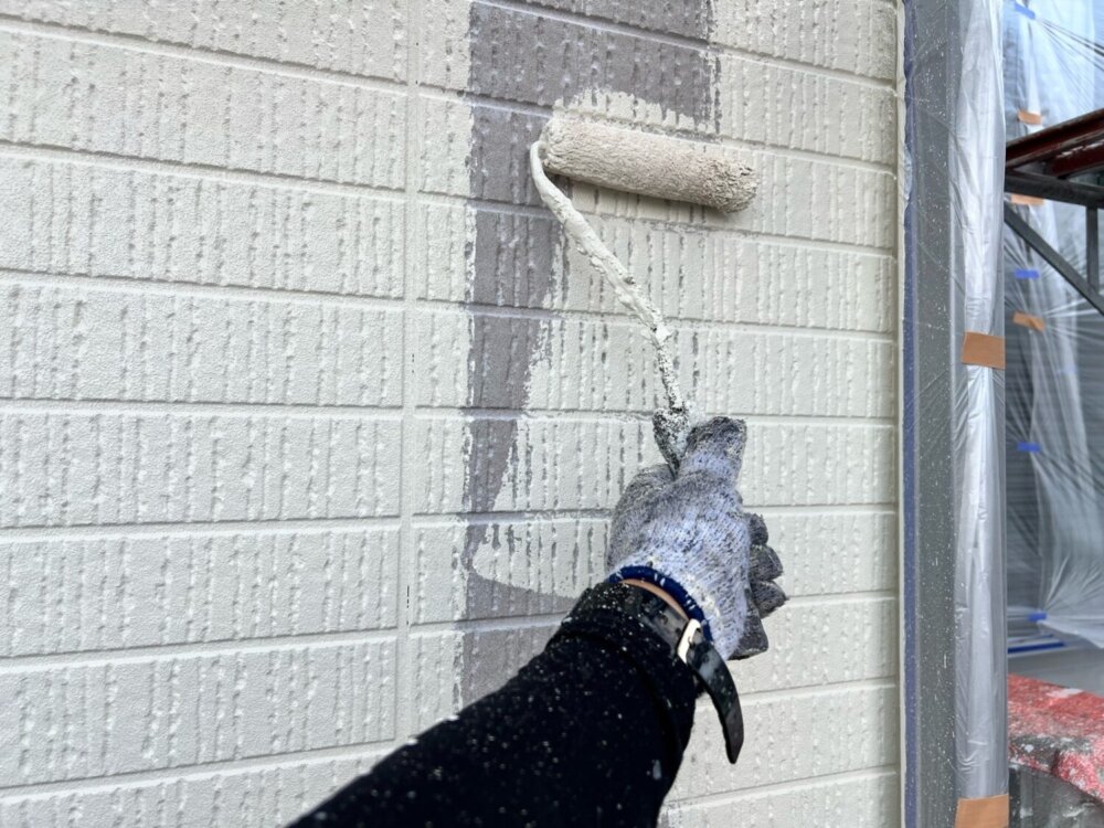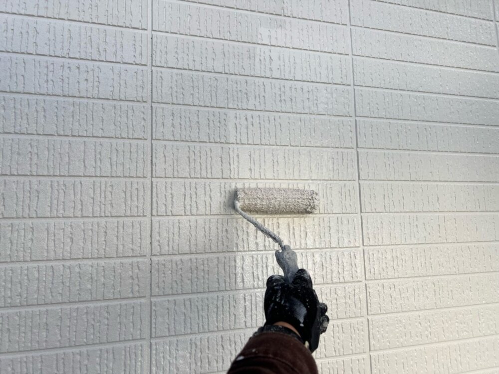 外壁材と塗料との密着性を高める為下塗り材を塗布していきます。