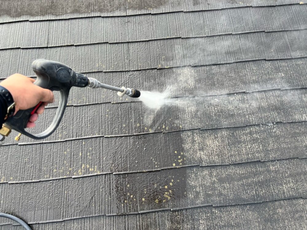 屋根に付着している砂塵、汚れ、苔、藻、カビなどを洗い流し綺麗にする作業になります。