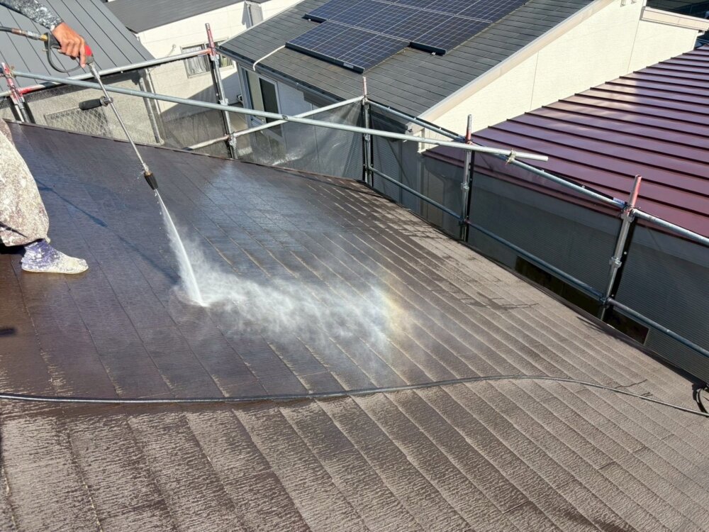 屋根に付着している砂塵、汚れ、苔、藻、カビなどを洗い流し綺麗にする作業になります。 -