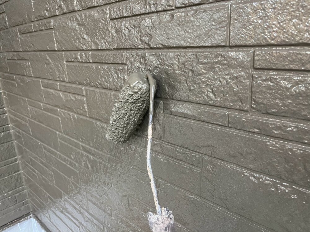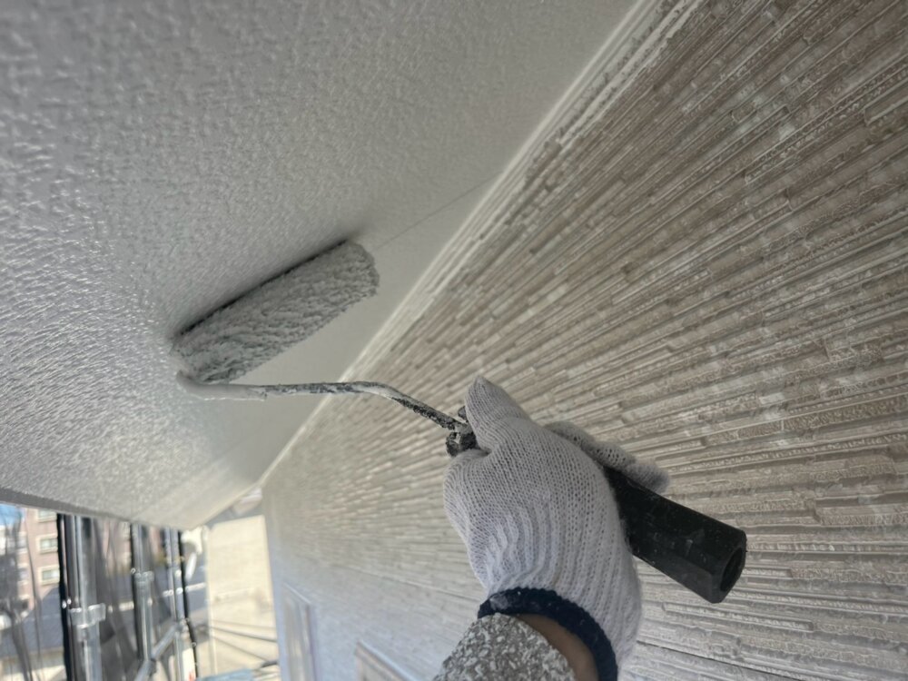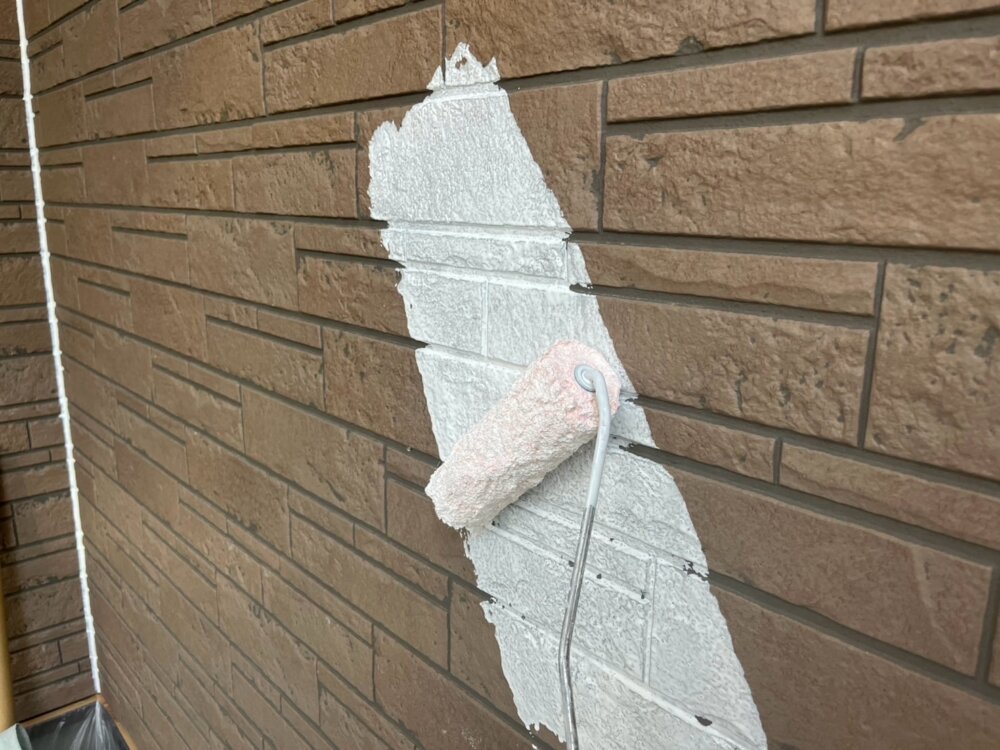 外壁材と塗料との密着性を高める為下塗り材を塗布していきます。 -
