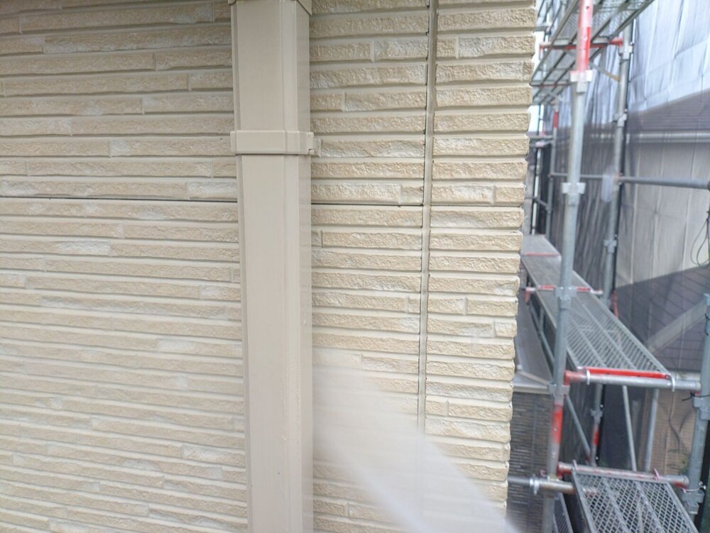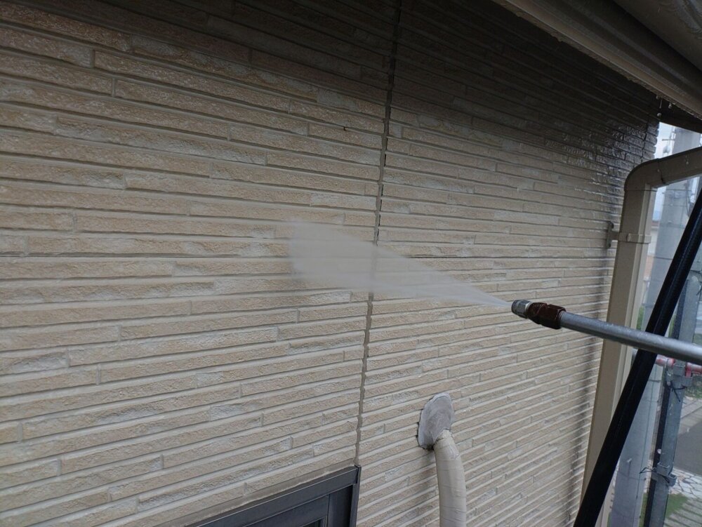 -     【高圧洗浄】外壁外壁に付着している砂塵、汚れ、苔、藻、カビなどを洗い流し綺麗にする作業になります。