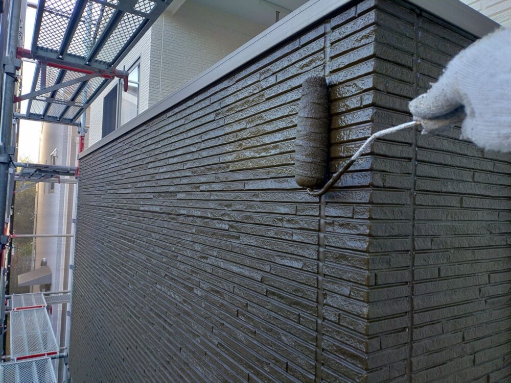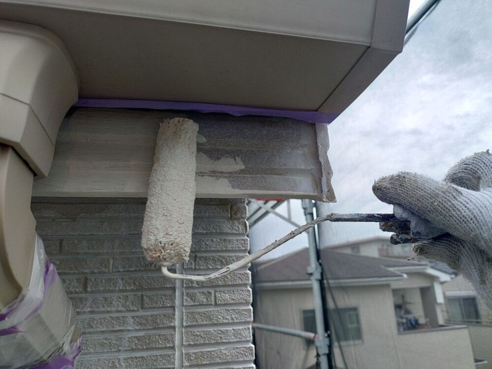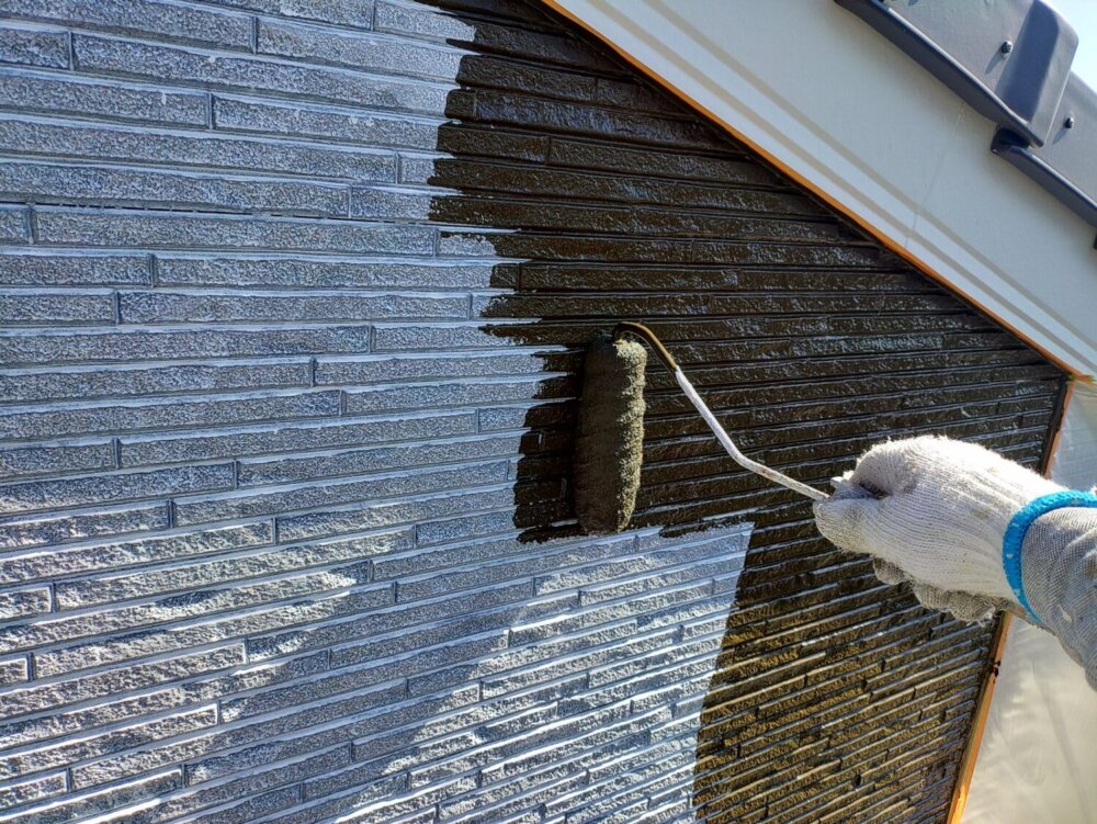 -     【下塗り】外壁外壁材と塗料との密着性を高める為下塗り材を塗布していきます。