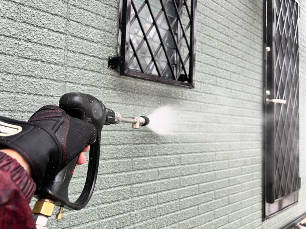 外壁に付着している砂塵、汚れ、苔、藻、カビなどを洗い流し綺麗にする作業になります。 -