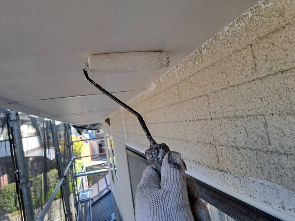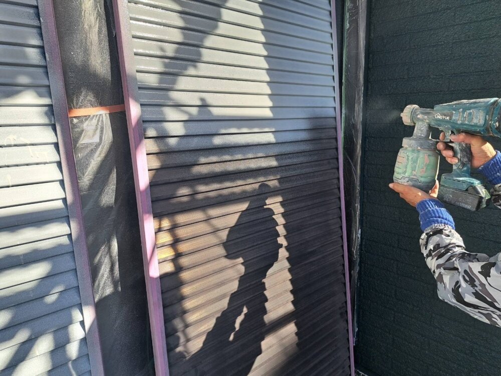 外壁材と塗料との密着性を高める為下塗り材を塗布していきます。 -