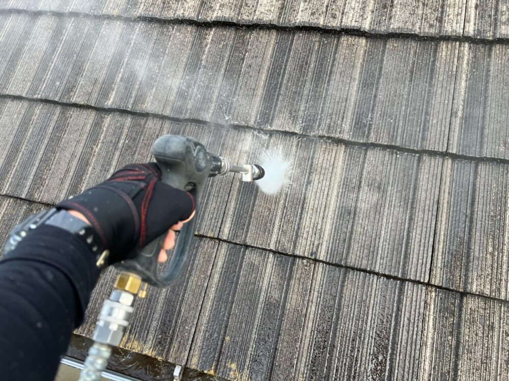 屋根に付着している砂塵、汚れ、苔、藻、カビなどを洗い流し綺麗にする作業になります。 -