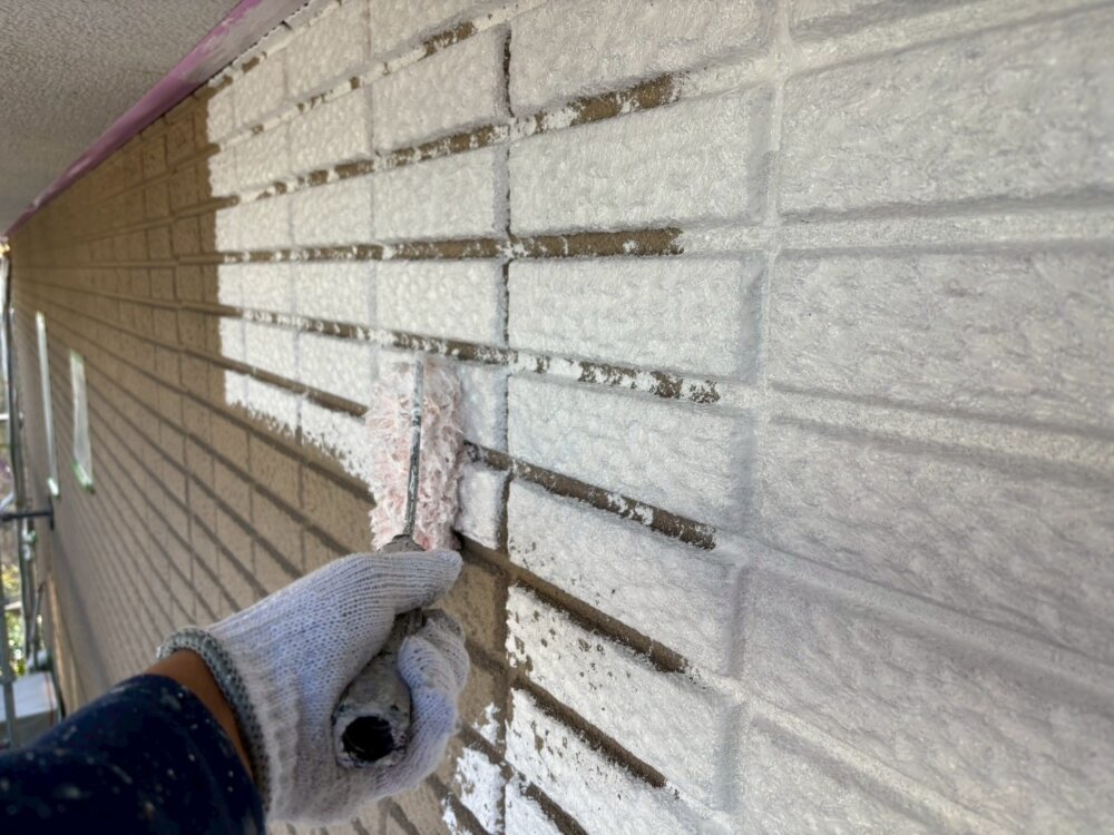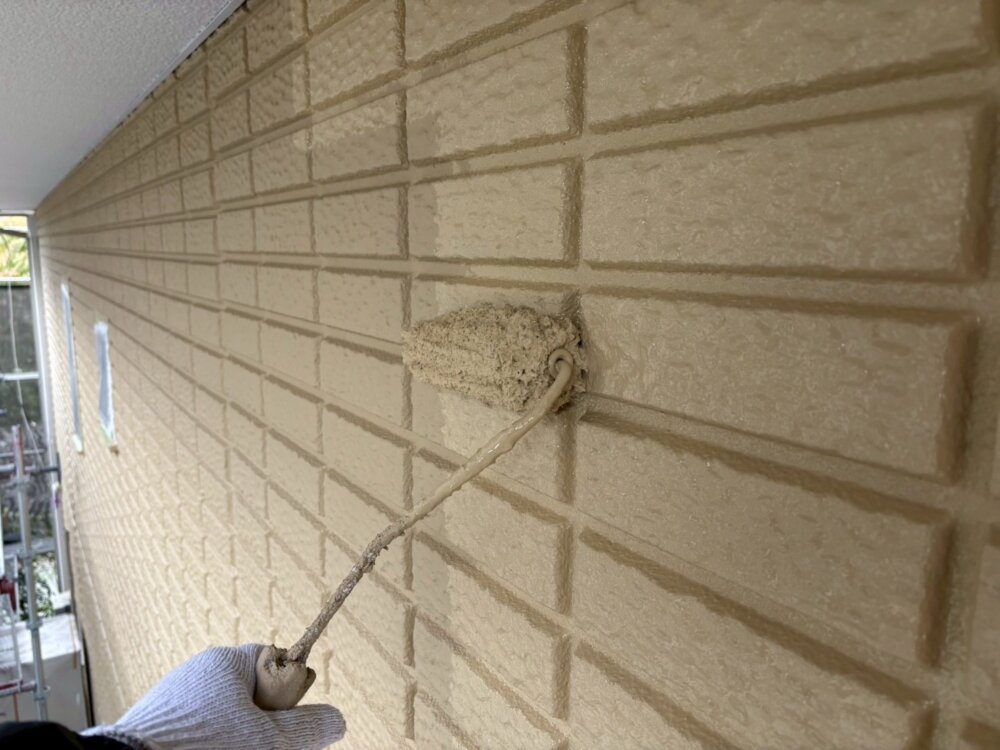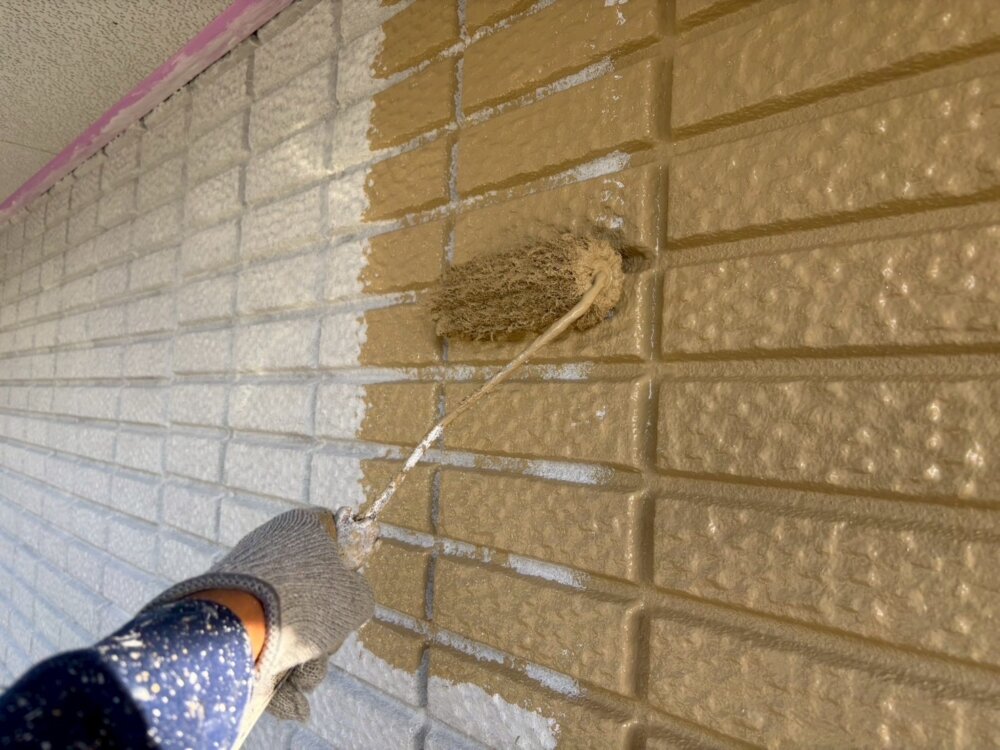 外壁材と塗料との密着性を高める為下塗り材を塗布していきます。