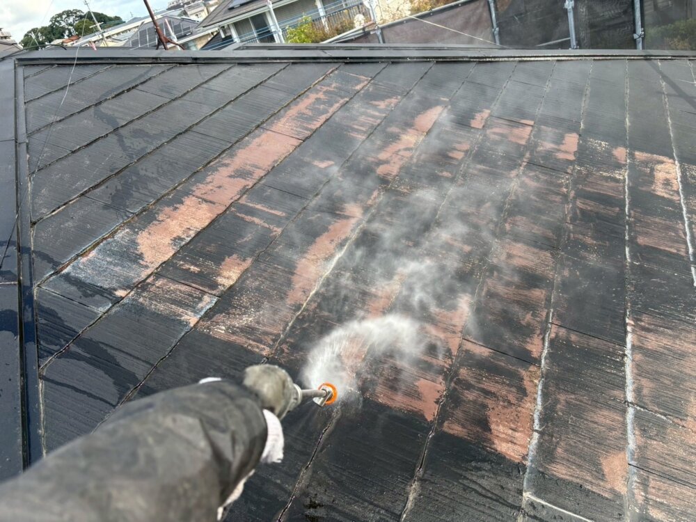 屋根に付着している砂塵、汚れ、苔、藻、カビなどを洗い流し綺麗にする作業になります。