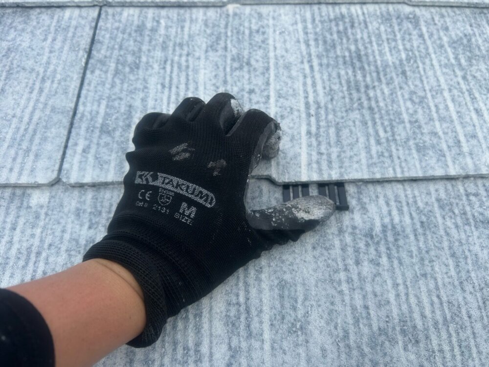 瓦と瓦の間にタスペーサーと呼ばれる部品を噛ませることで毛細管現象による雨漏りを防止します。 -
