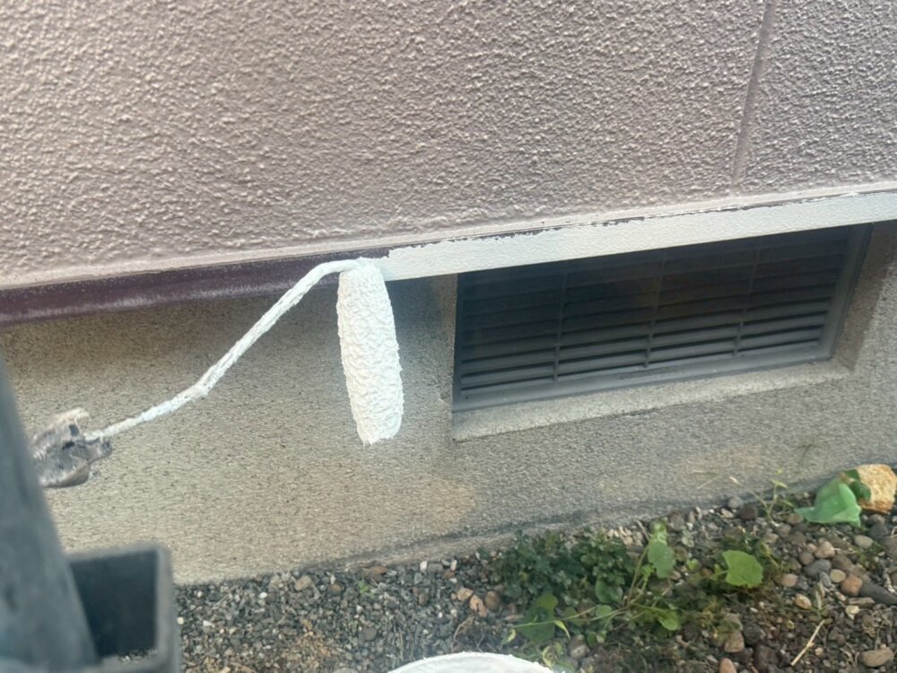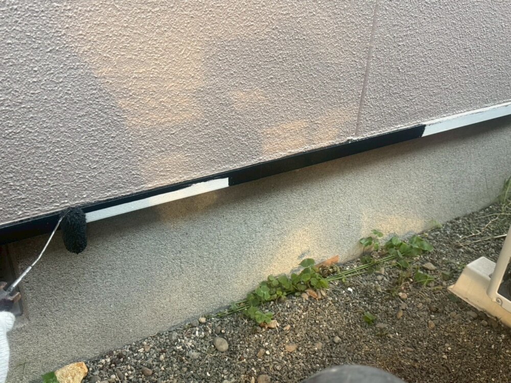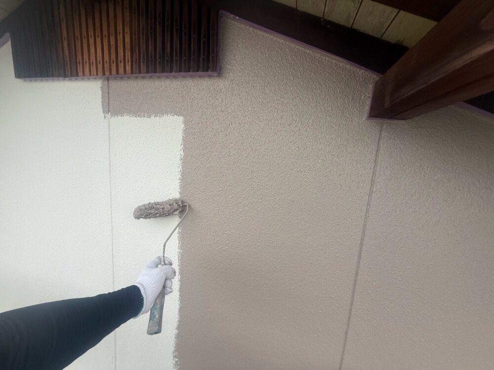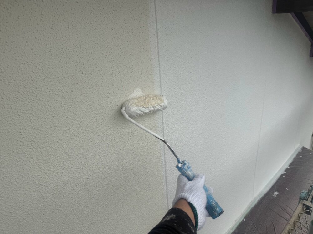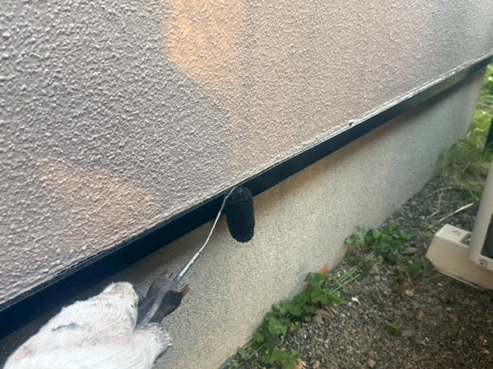 外壁材と塗料との密着性を高める為下塗り材を塗布していきます。 -