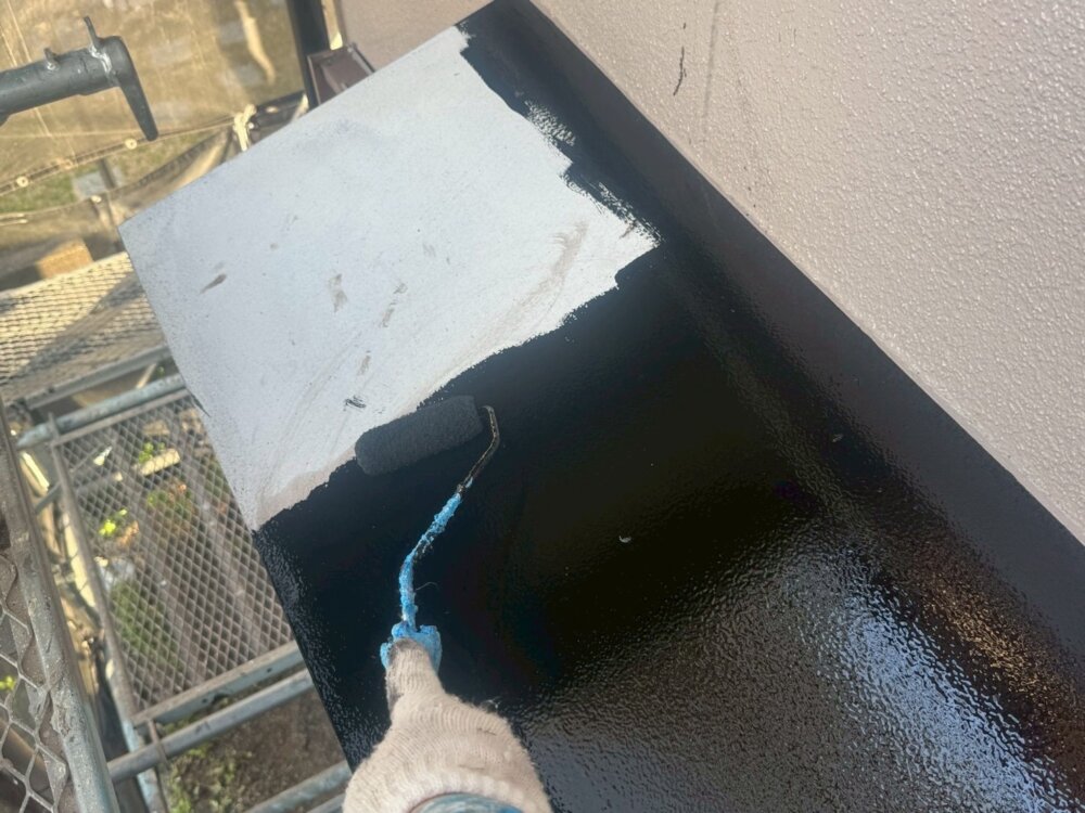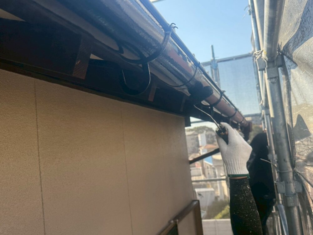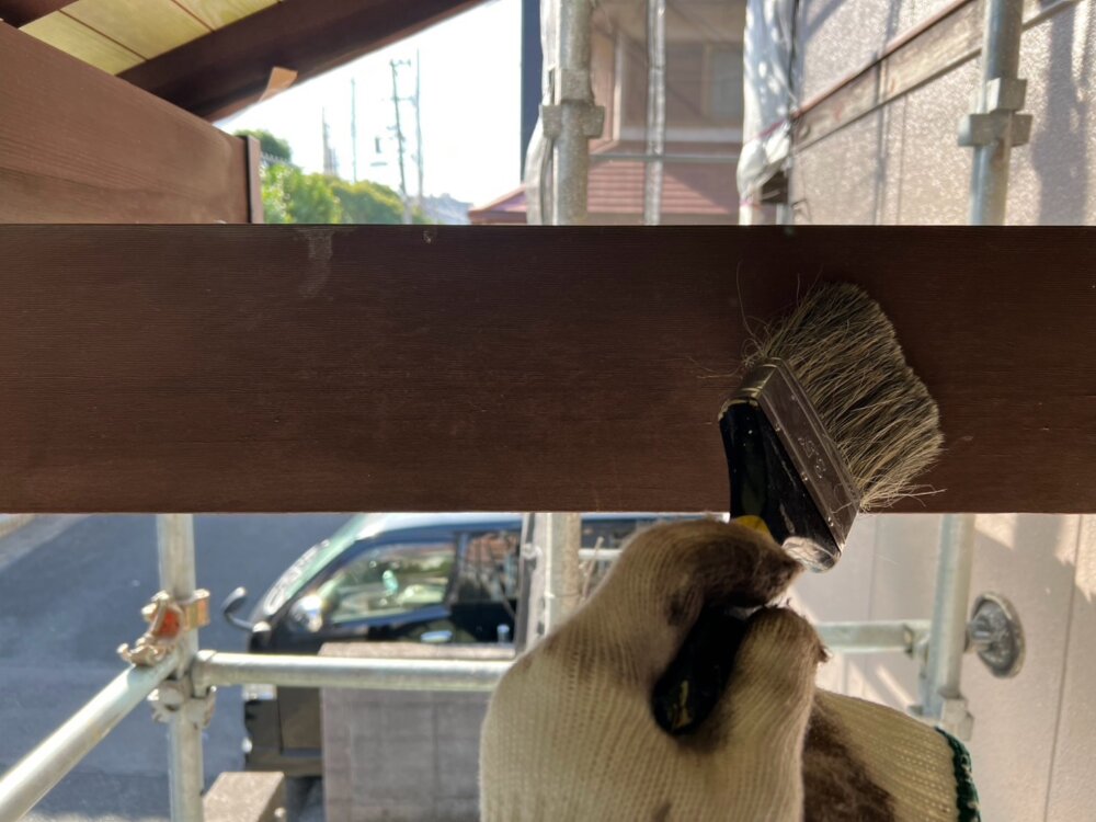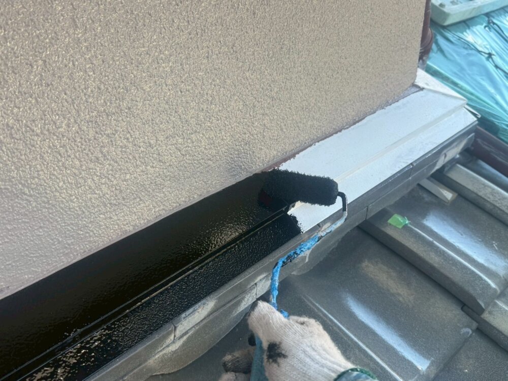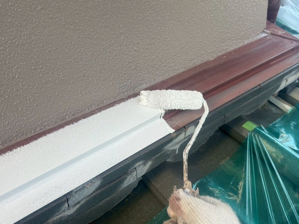 外壁材と塗料との密着性を高める為下塗り材を塗布していきます。 -