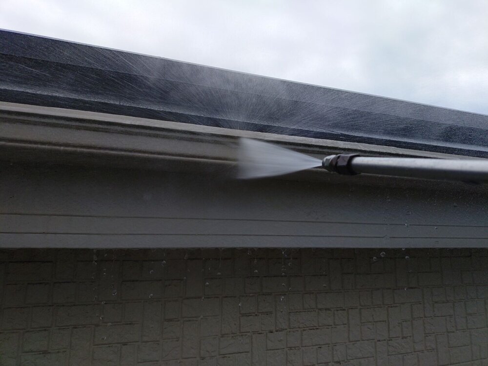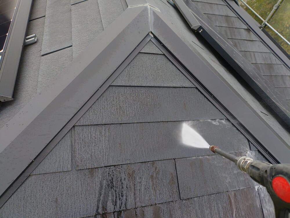 屋根に付着している砂塵、汚れ、苔、藻、カビなどを洗い流し綺麗にする作業になります。 -