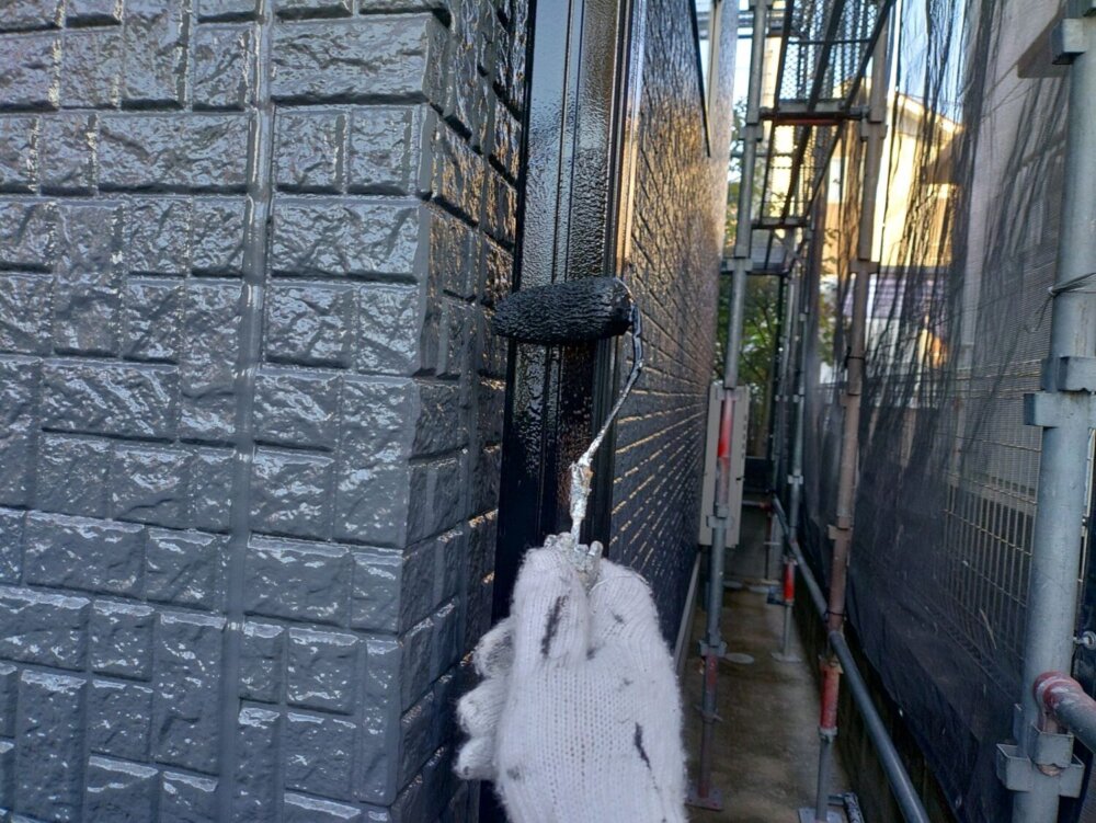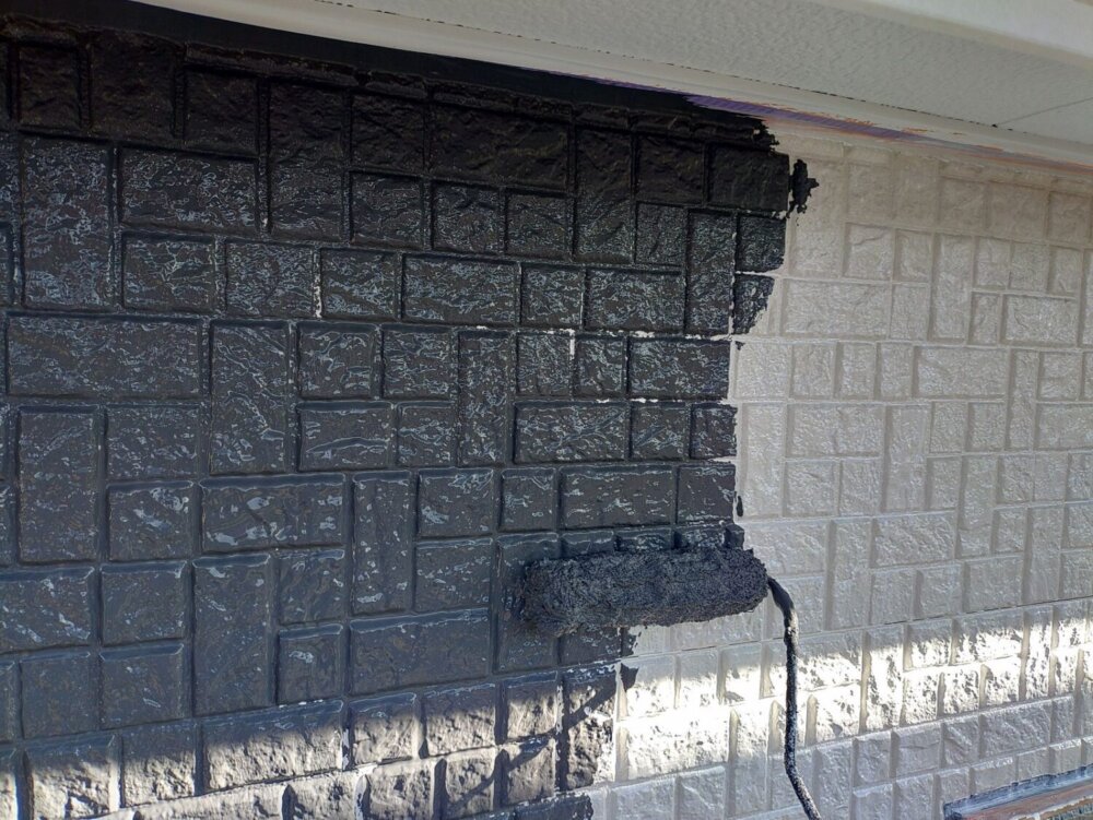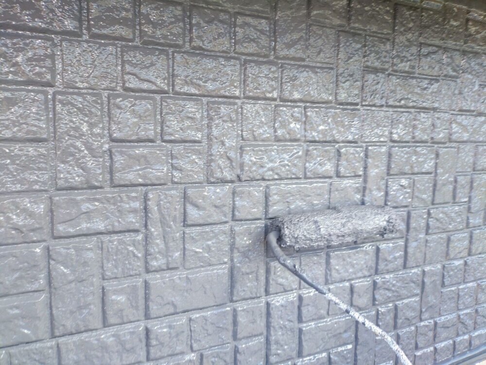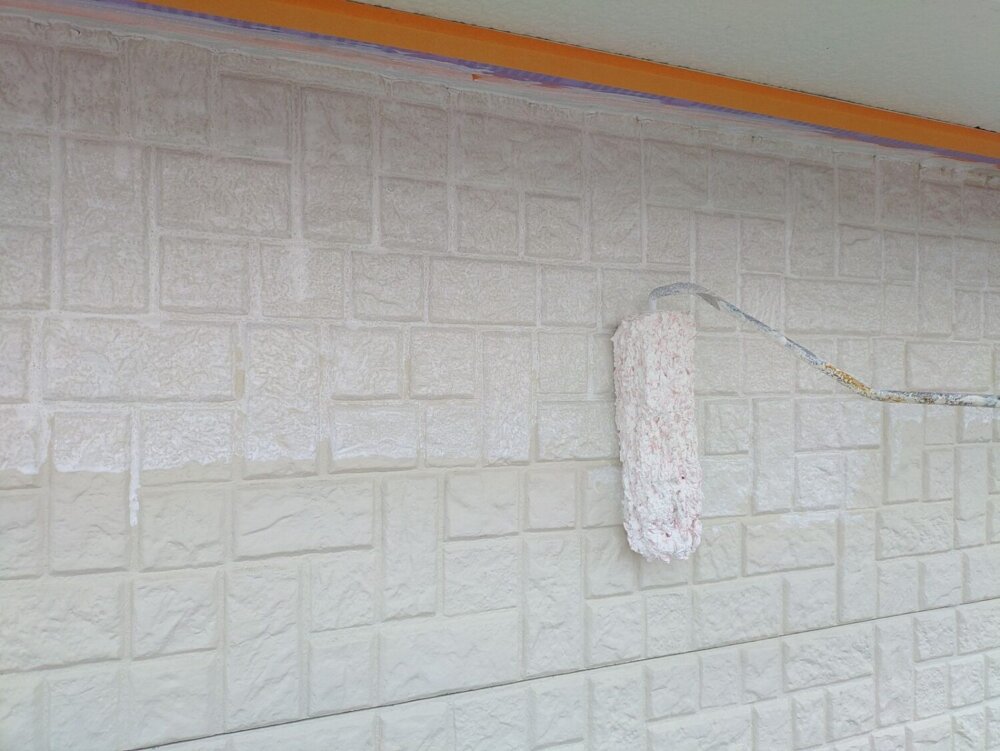 外壁材と塗料との密着性を高める為下塗り材を塗布していきます。 -