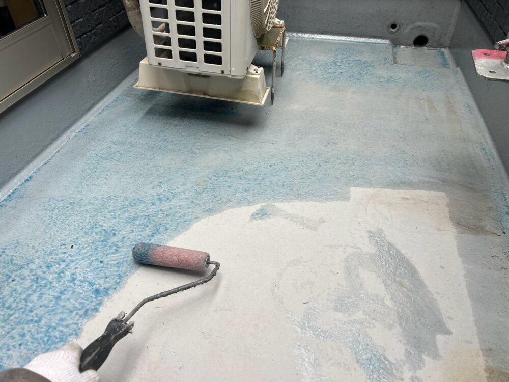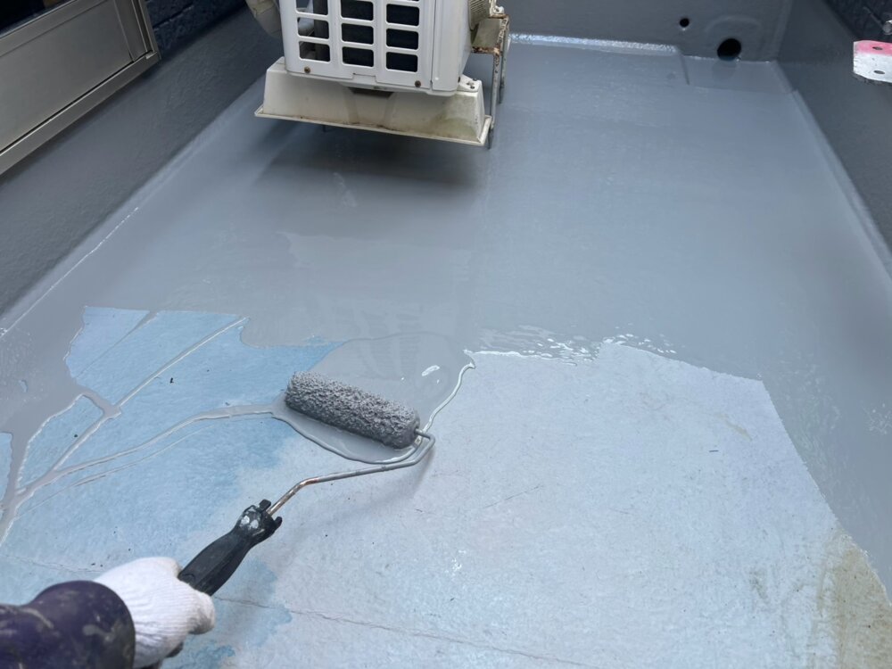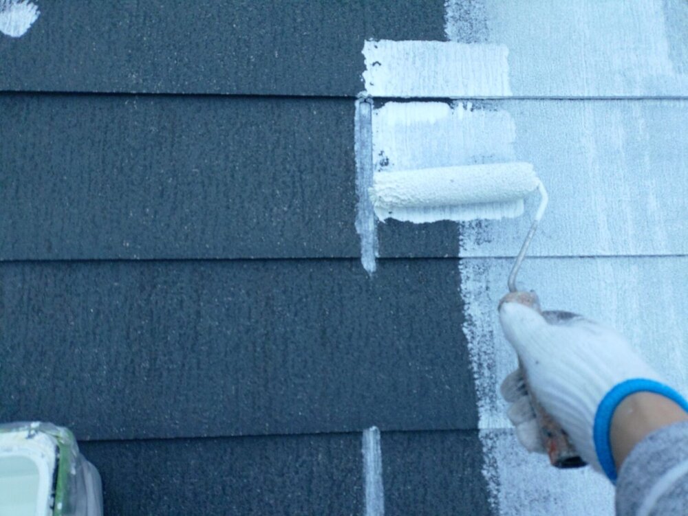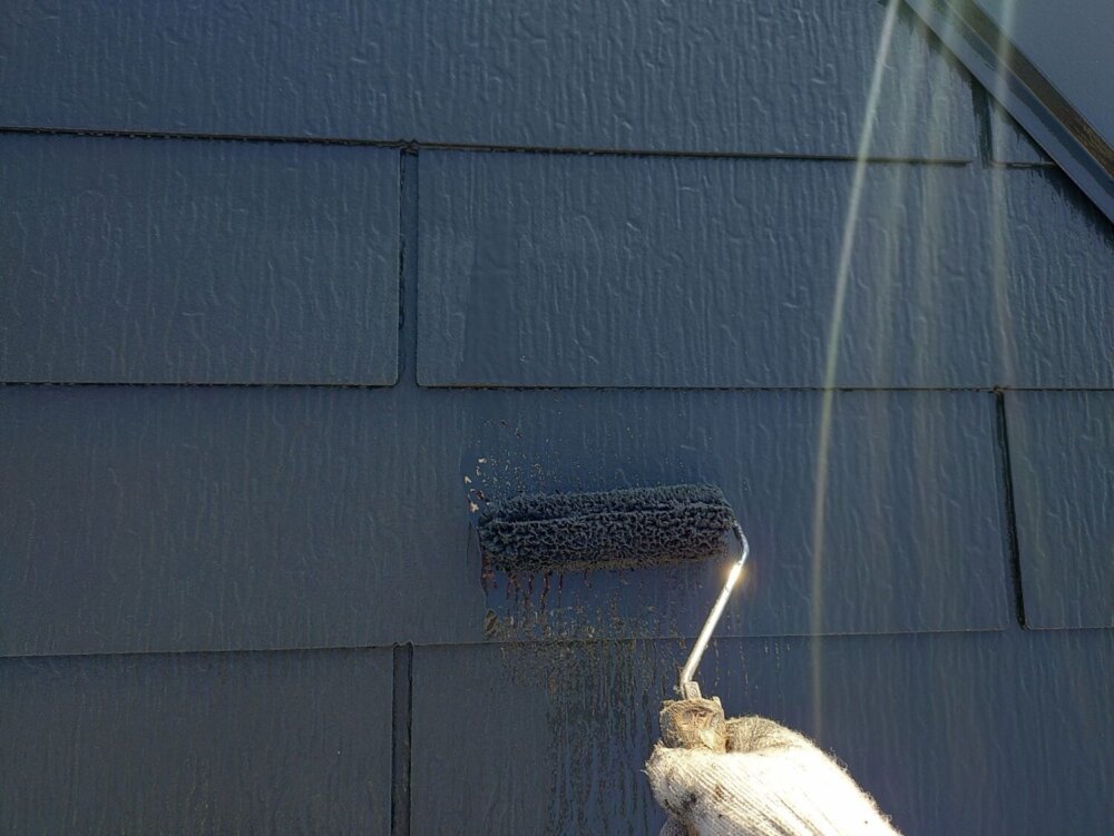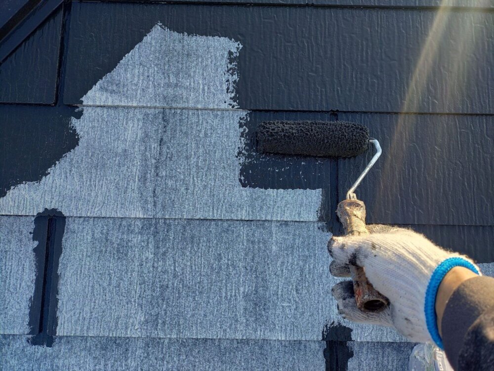 屋根材と塗料との密着性を高める為下塗り材を塗布していきます。 -