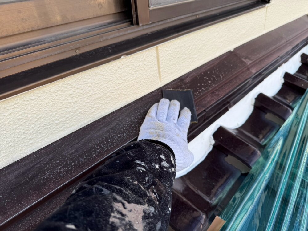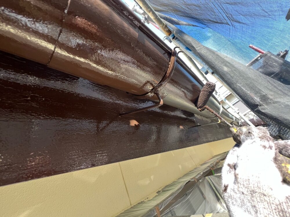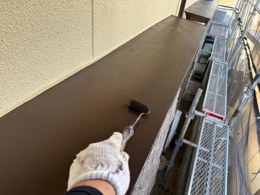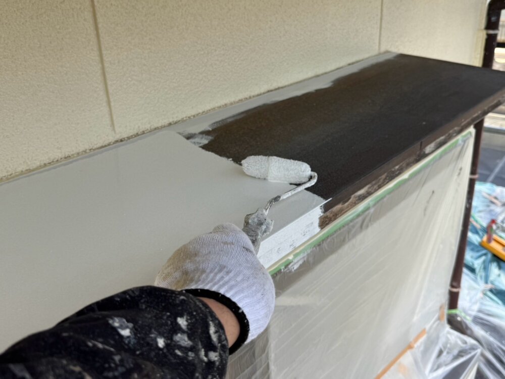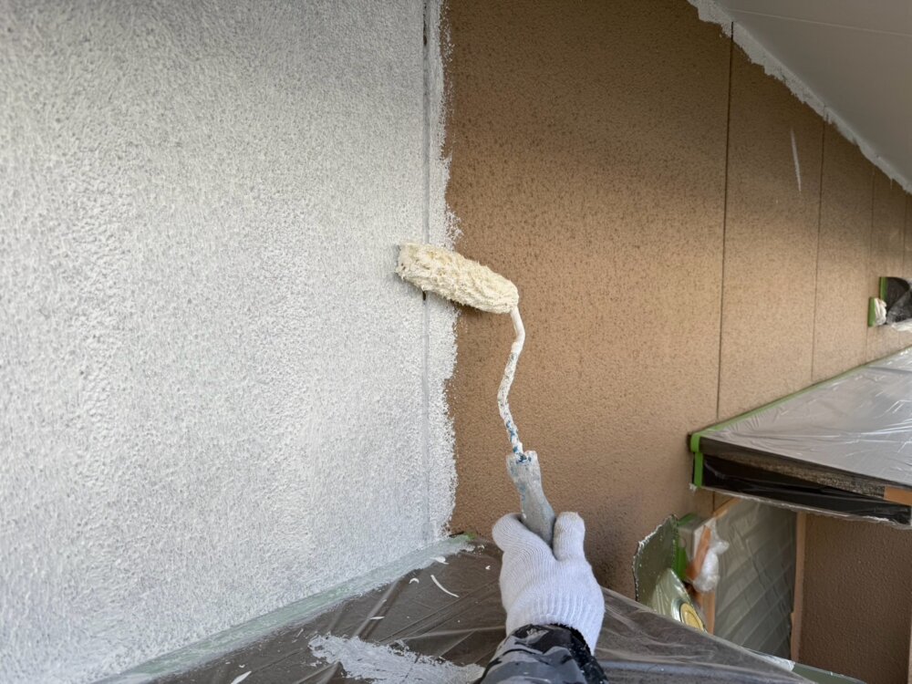 外壁材と塗料との密着性を高める為下塗り材を塗布していきます。 -
