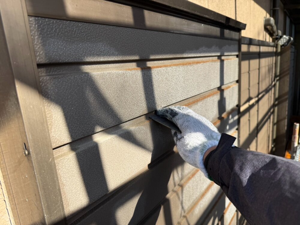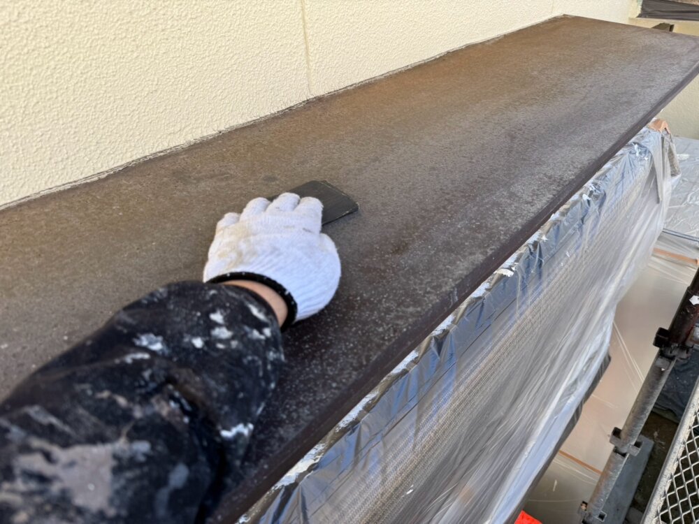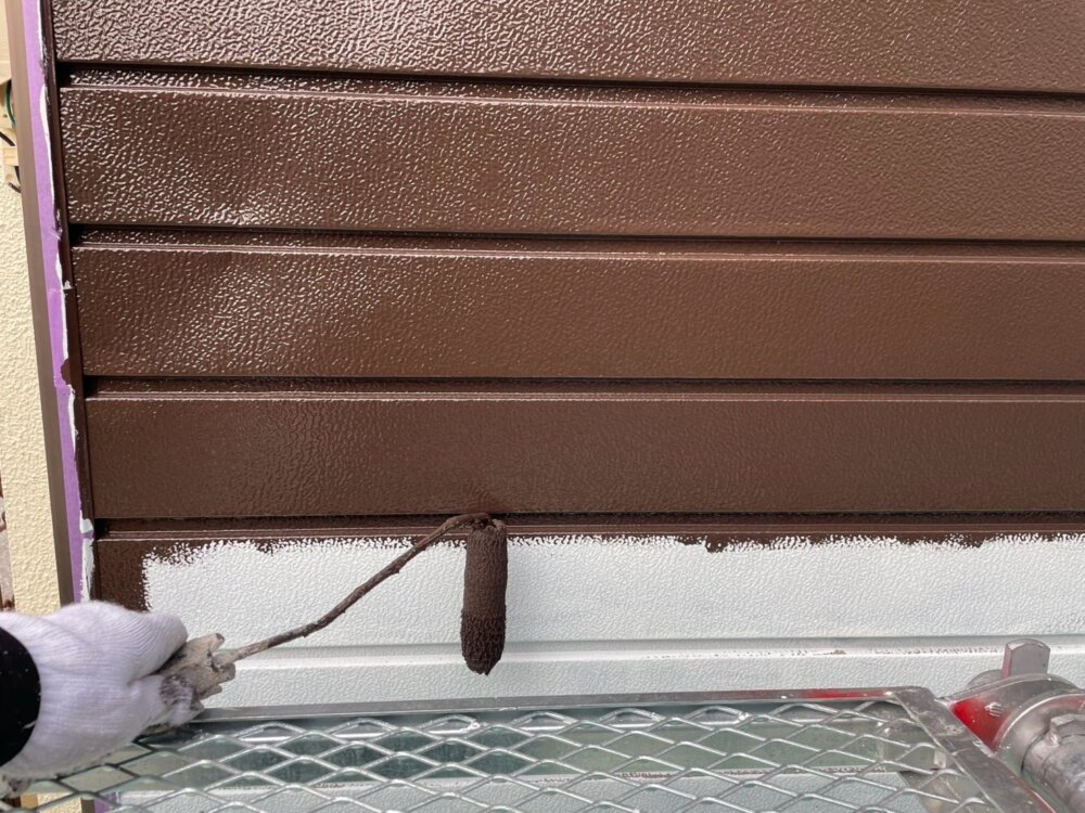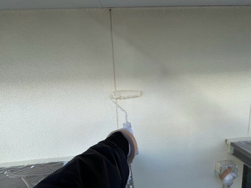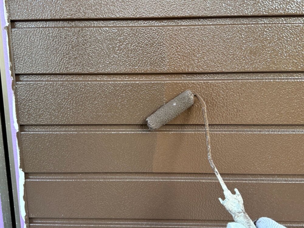 外壁材と塗料との密着性を高める為中塗り材を塗布していきます。 -