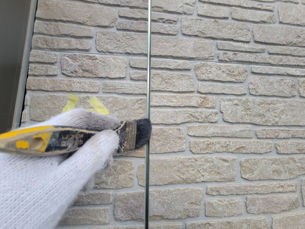 コーキング充填(コーキングを塗っていく)する前に、必ずプライマー(接着剤)を塗っていきます。