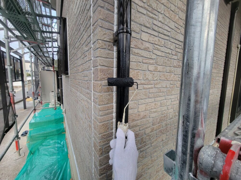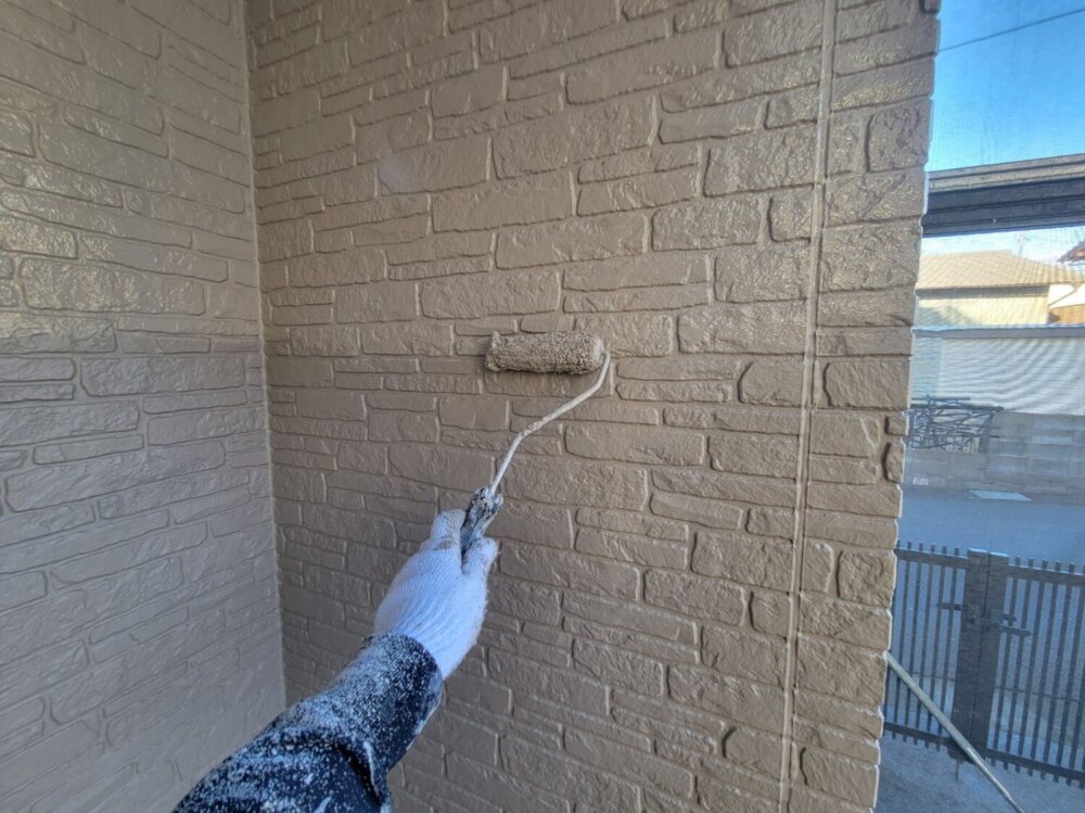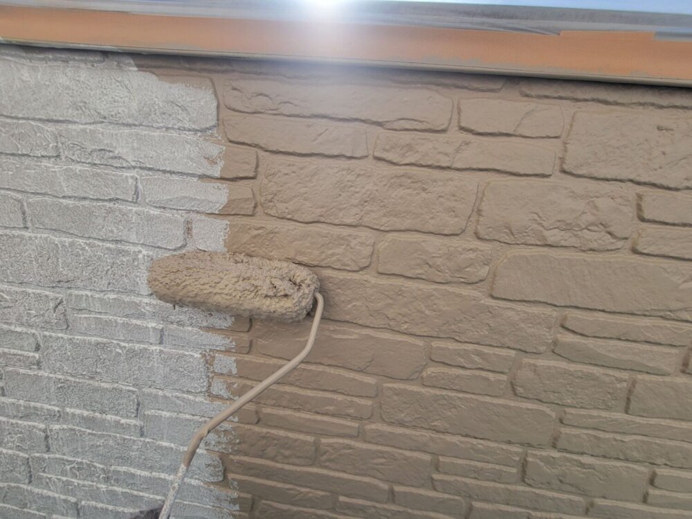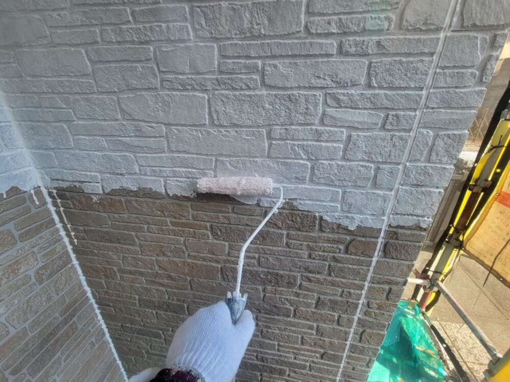外壁材と塗料との密着性を高める為下塗り材を塗布していきます。 -
