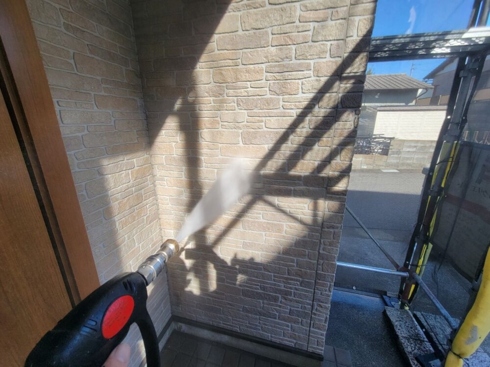 外壁に付着している砂塵、汚れ、苔、藻、カビなどを洗い流し綺麗にする作業になります。 -