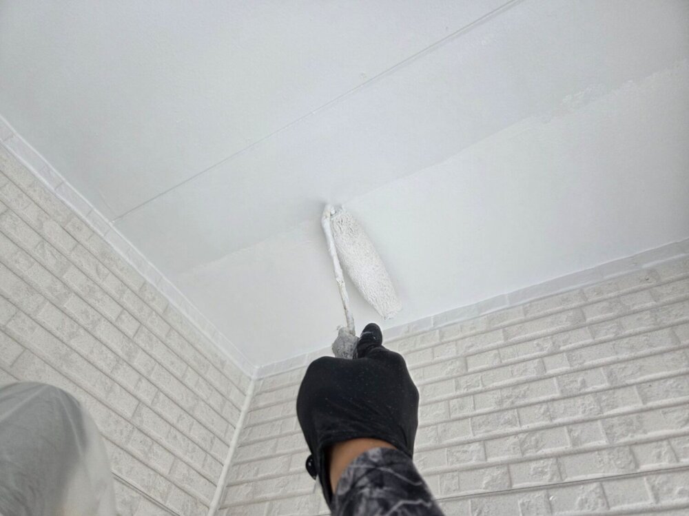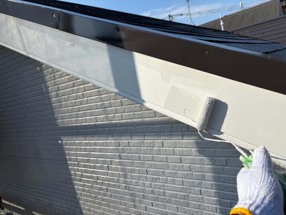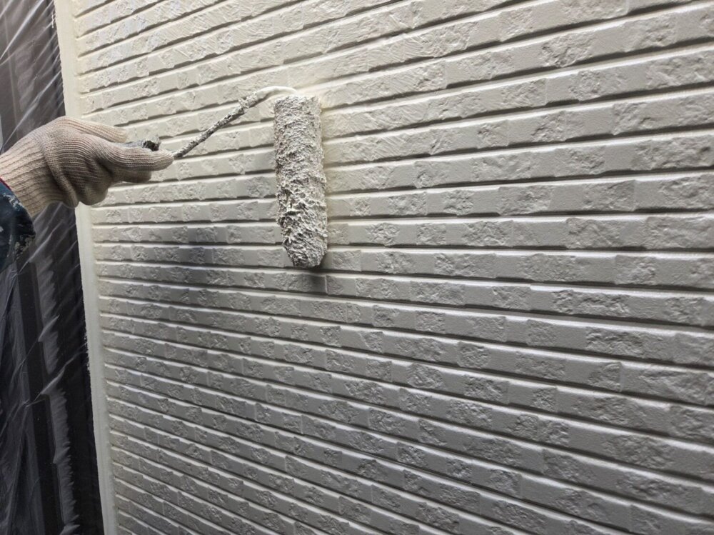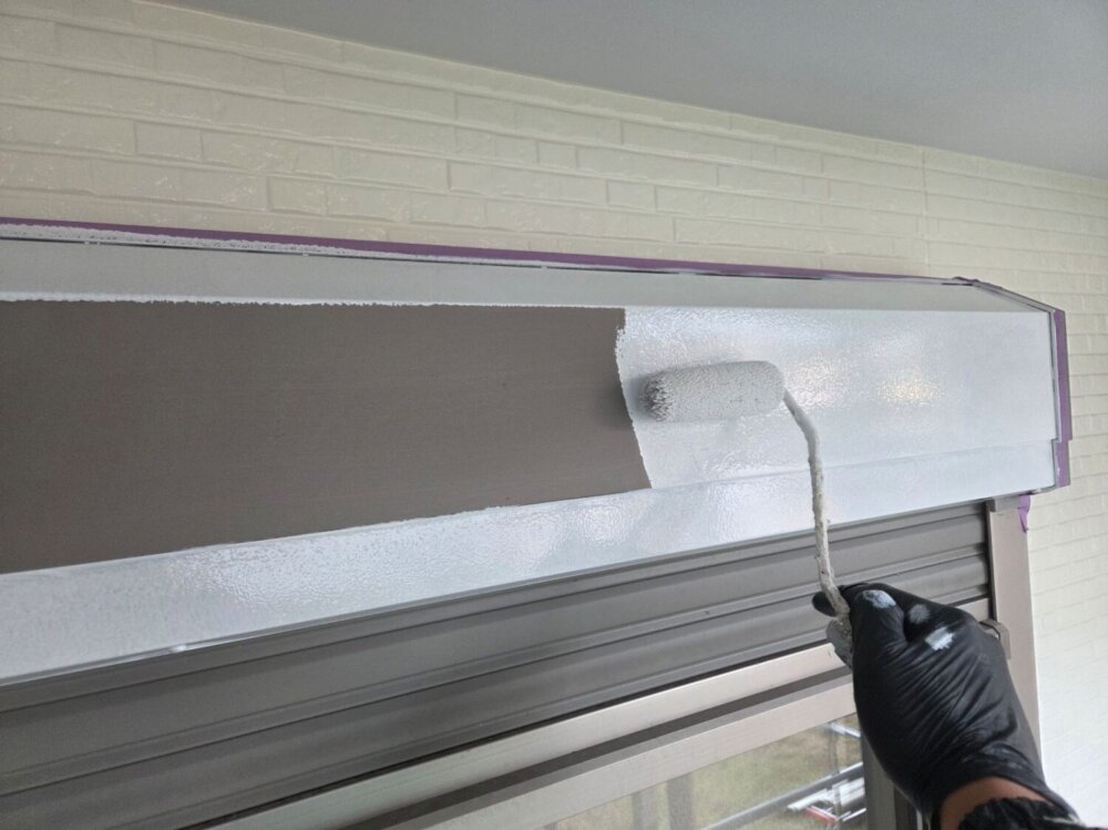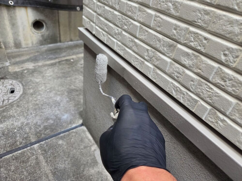 外壁材と塗料との密着性を高める為下塗り材を塗布していきます。
