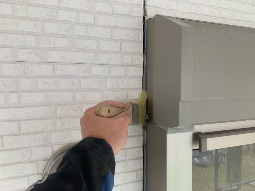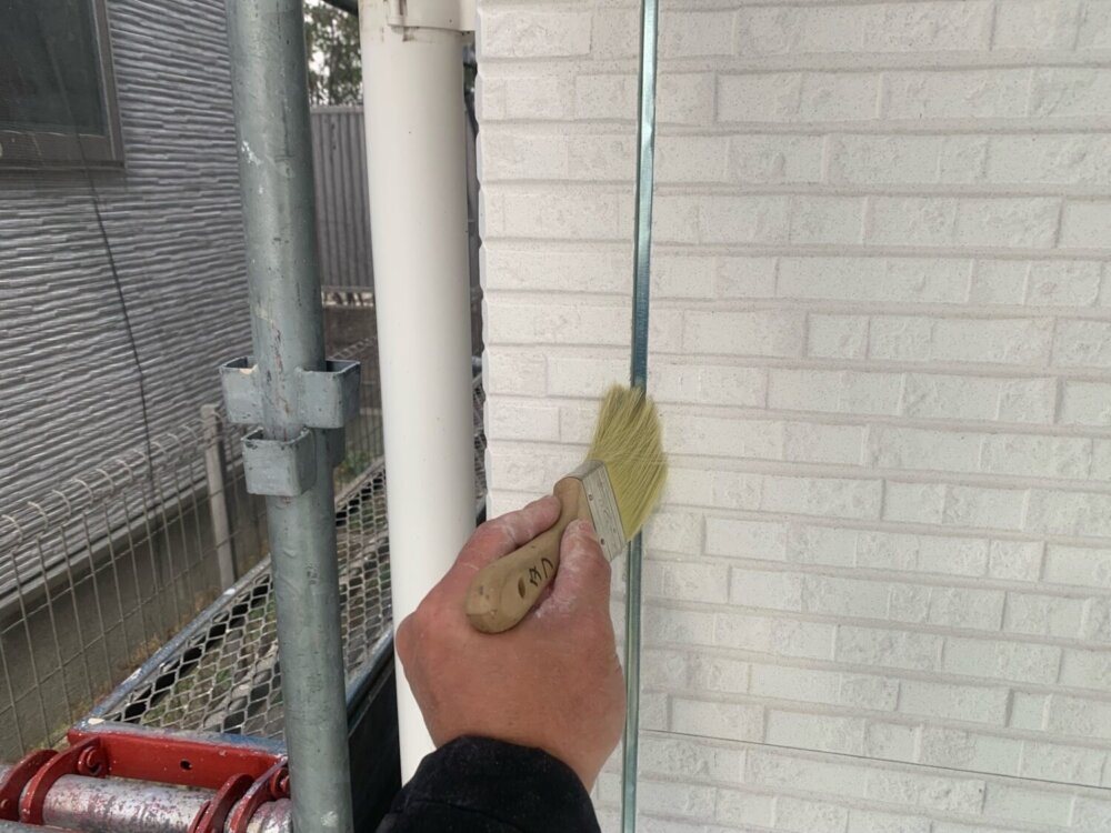 コーキング充填(コーキングを塗っていく)する前に、必ずプライマー(接着剤)を塗っていきます。