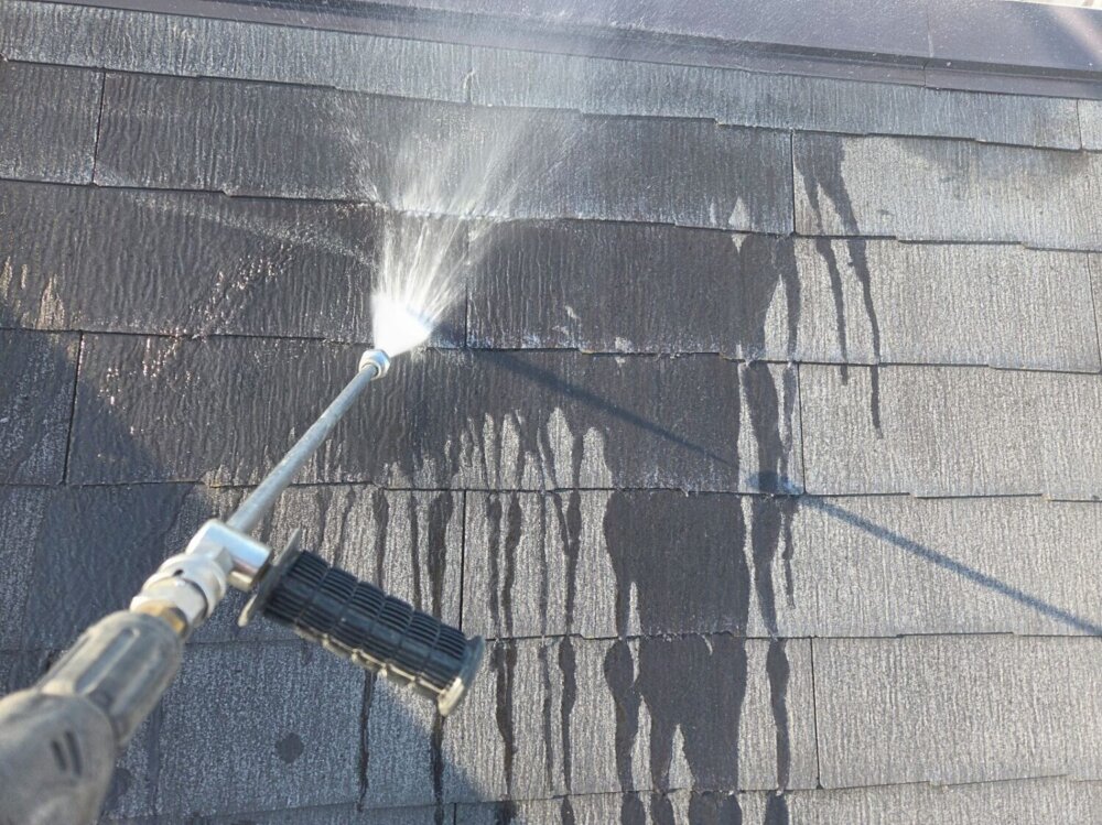 屋根に付着している砂塵、汚れ、苔、藻、カビなどを洗い流し綺麗にする作業になります。