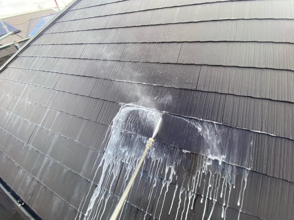 屋根に付着している砂塵、汚れ、苔、藻、カビなどを洗い流し綺麗にする作業になります。 -