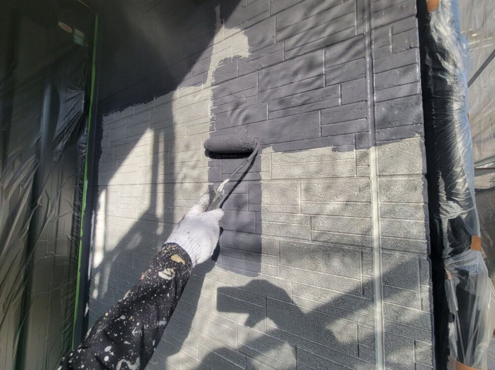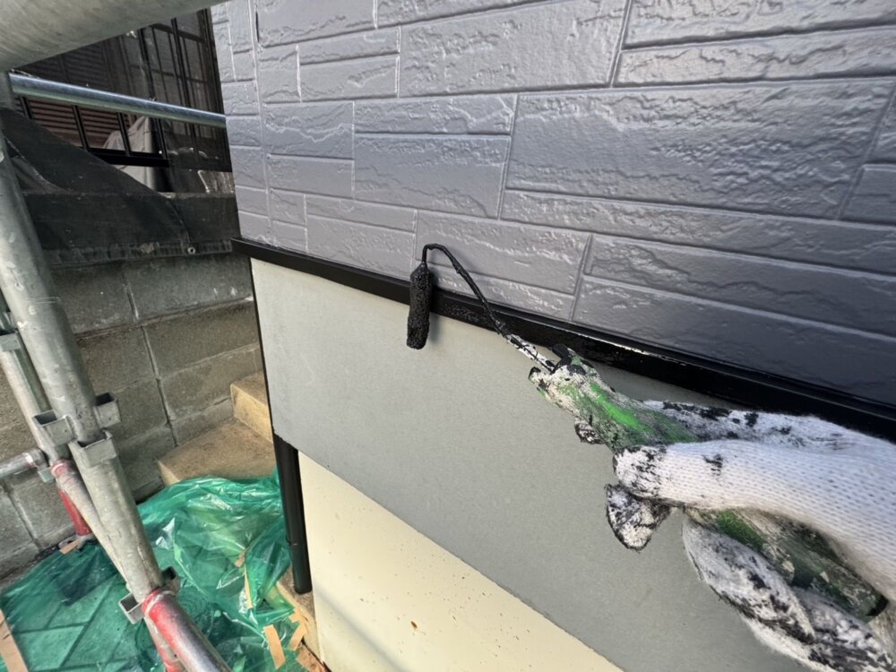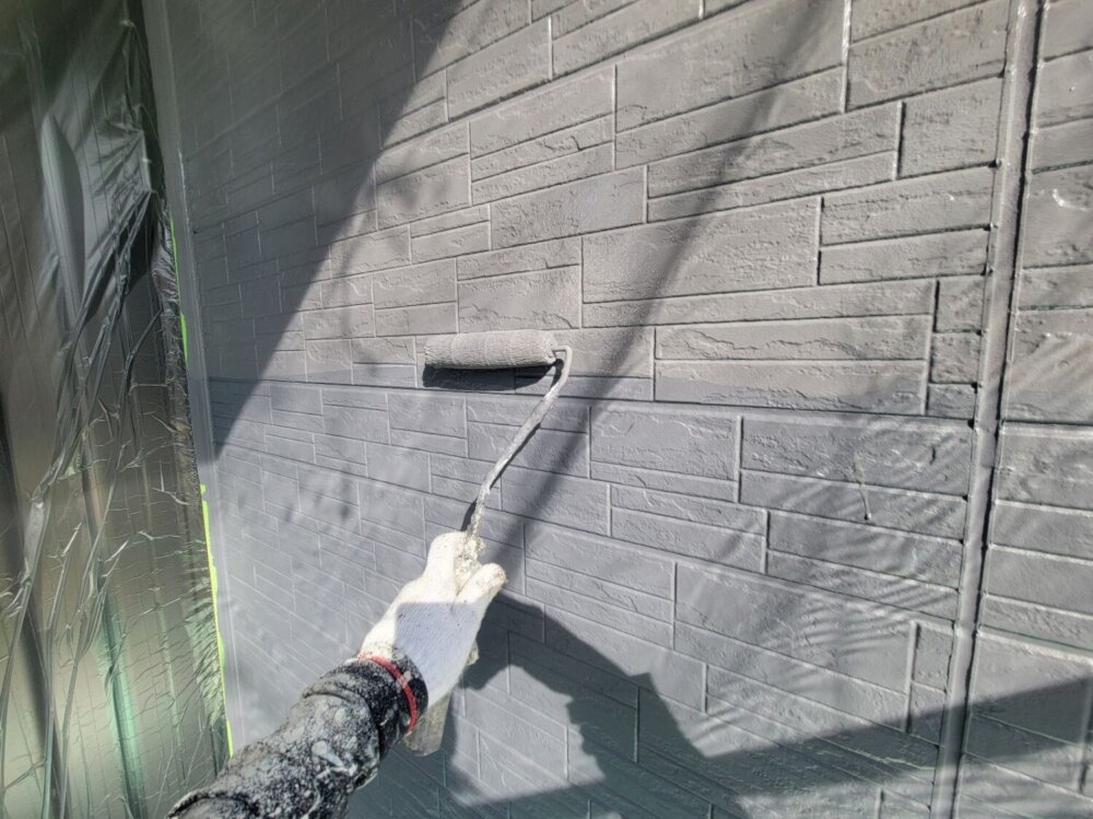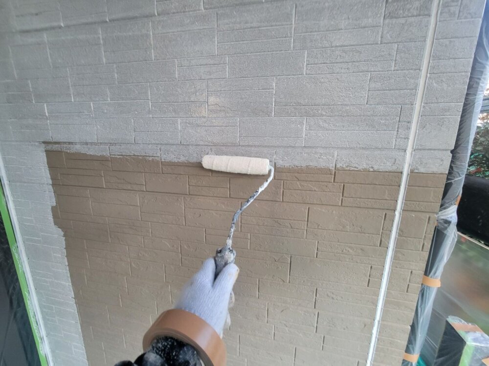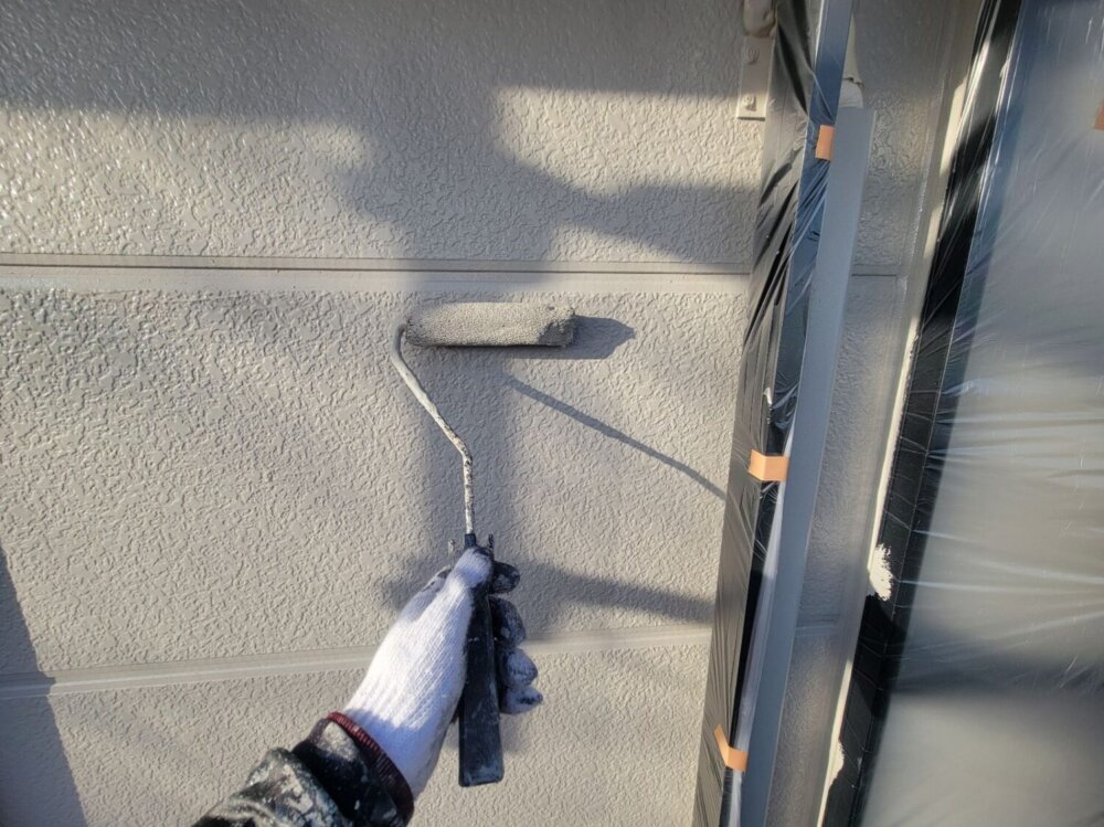 外壁材と塗料との密着性を高める為下塗り材を塗布していきます。 -