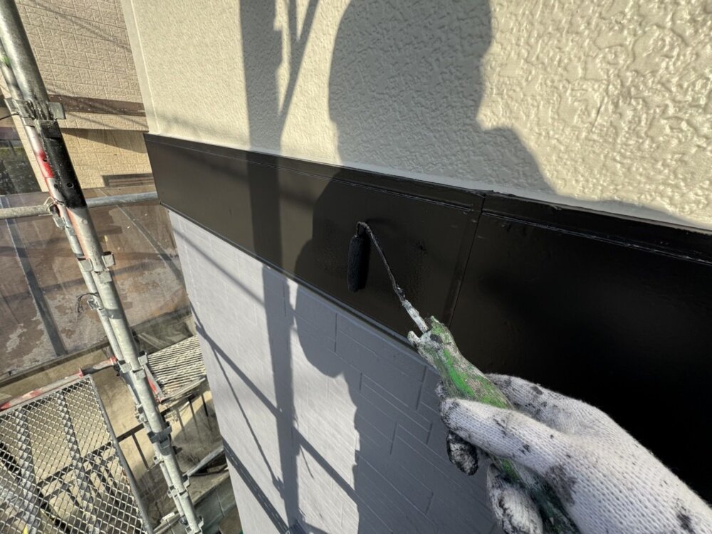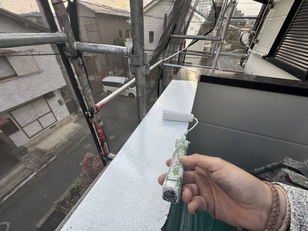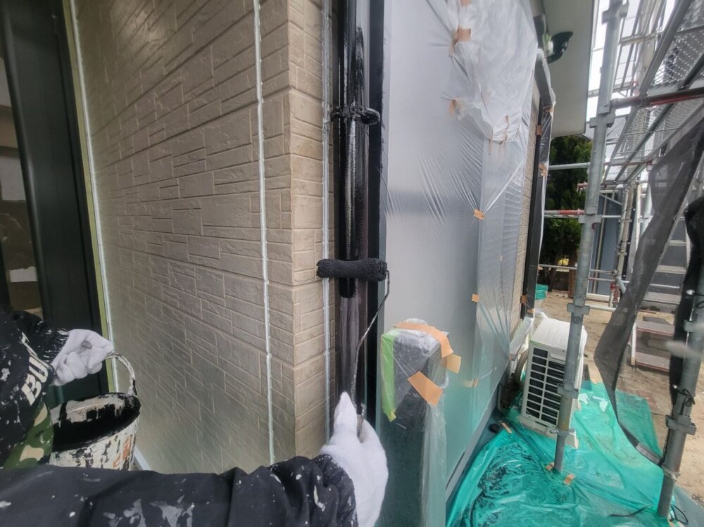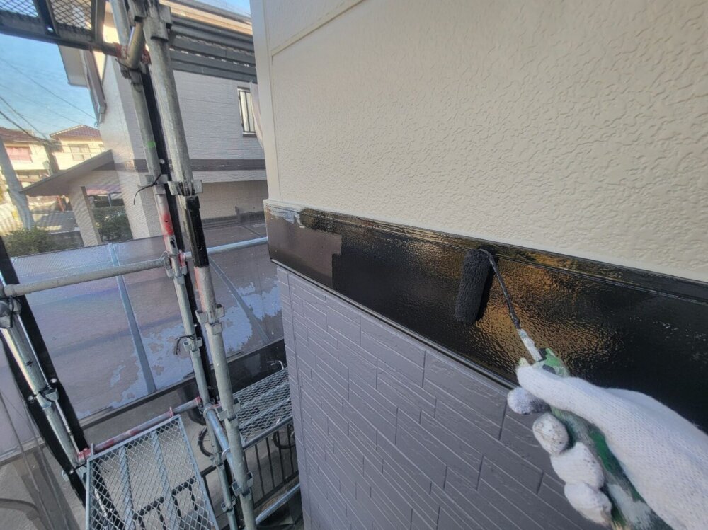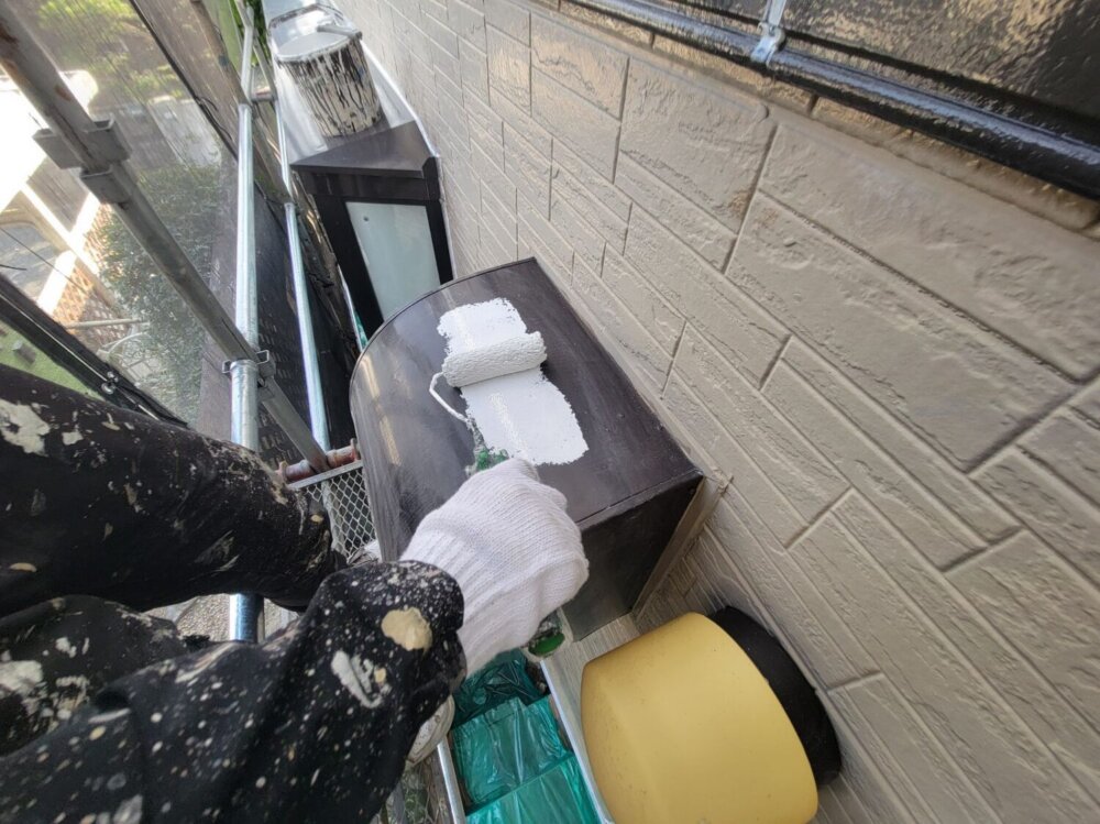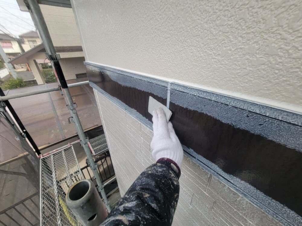 外壁材と塗料との密着性を高める為下塗り材を塗布していきます。 -