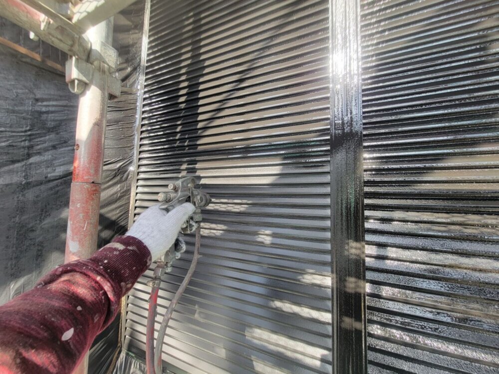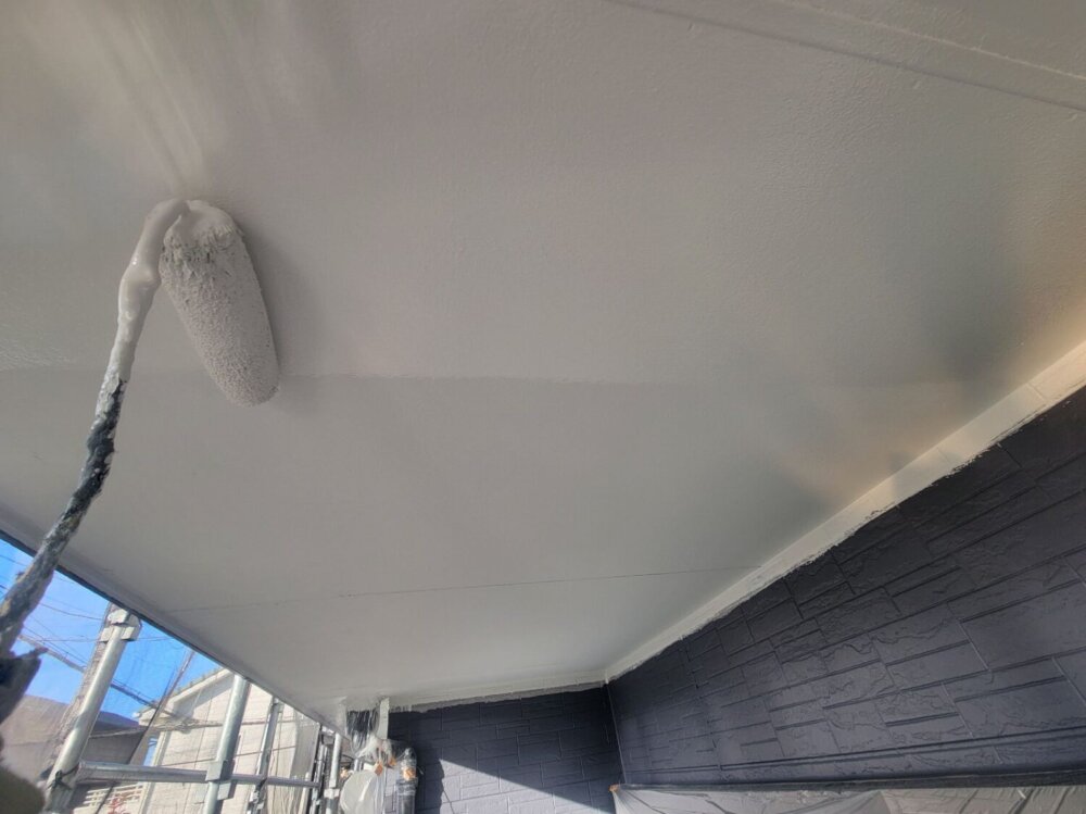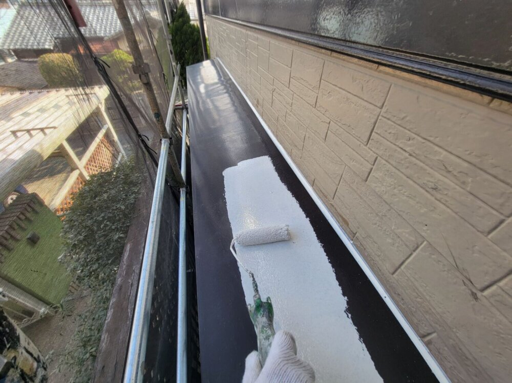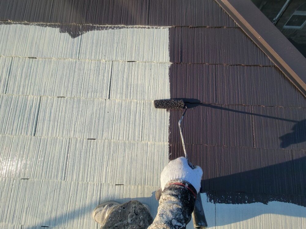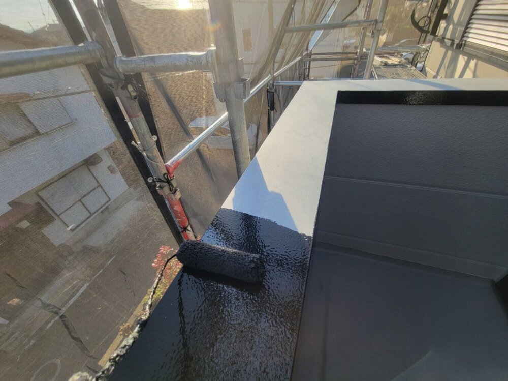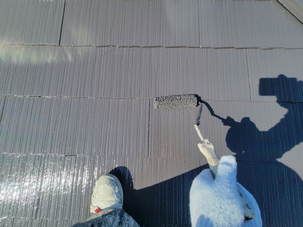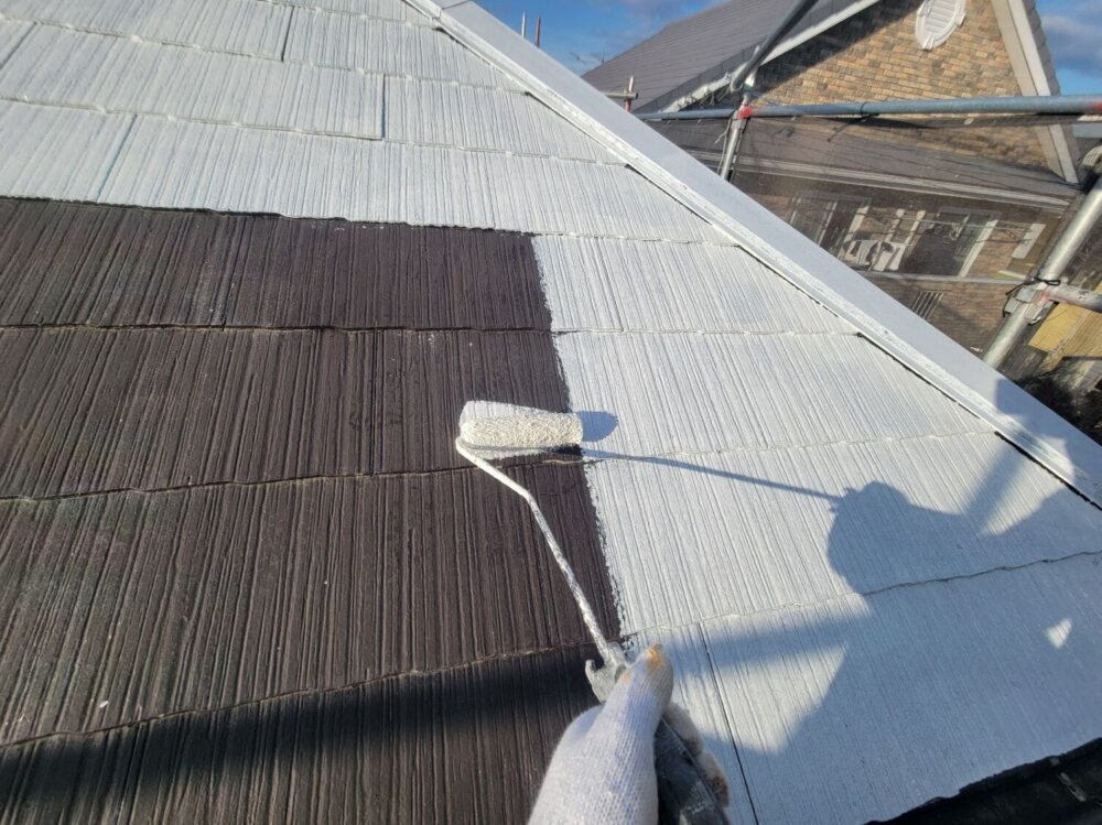 屋根材と塗料との密着性を高める為下塗り材を塗布していきます。 -