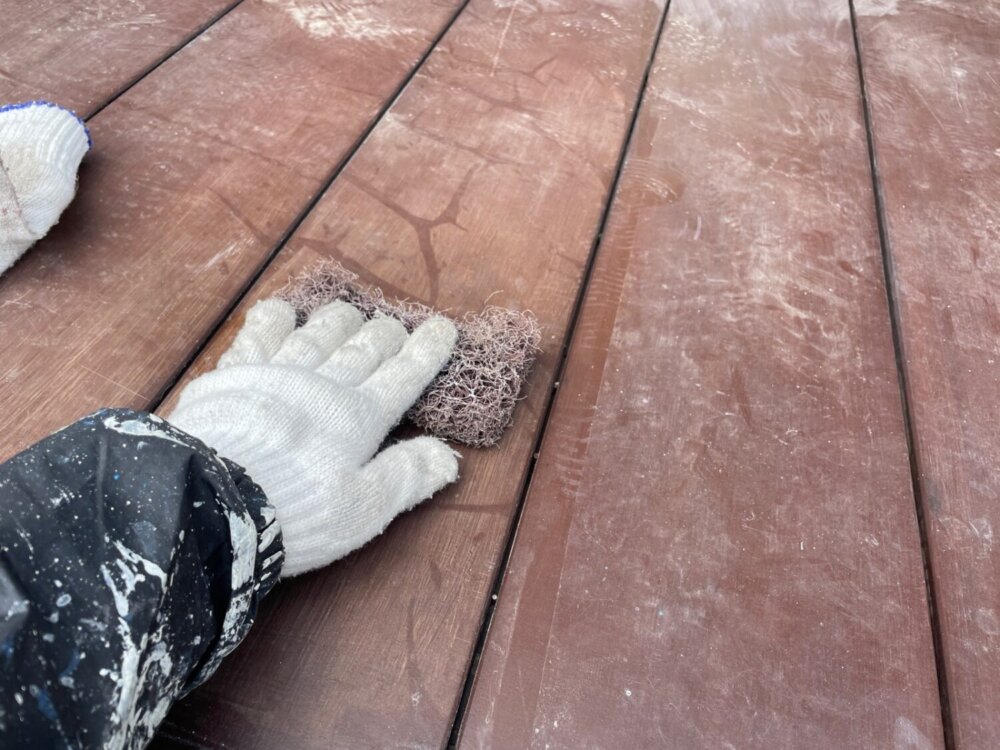 下塗りと上塗りの塗膜を密着させる大事な工程になります。 -