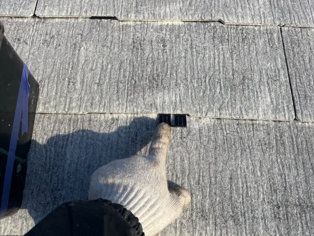 瓦と瓦の間にタスペーサーと呼ばれる部品を噛ませることで毛細管現象による雨漏りを防止します。 -