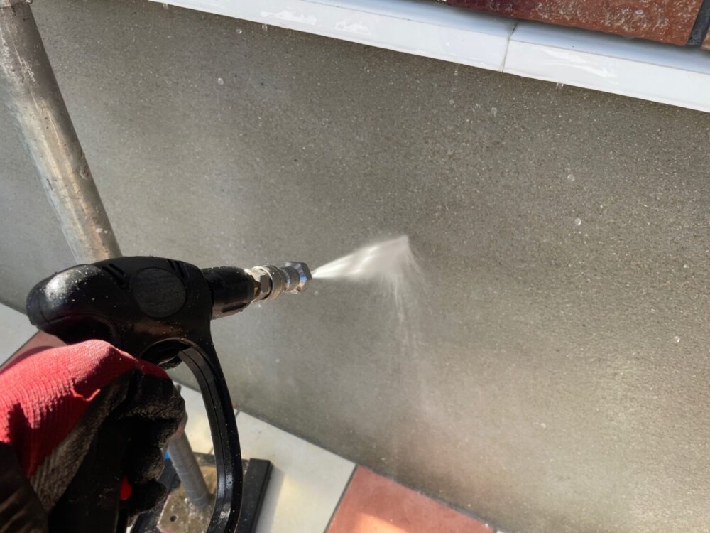 外壁に付着している砂塵、汚れ、苔、藻、カビなどを洗い流し綺麗にする作業になります。 -